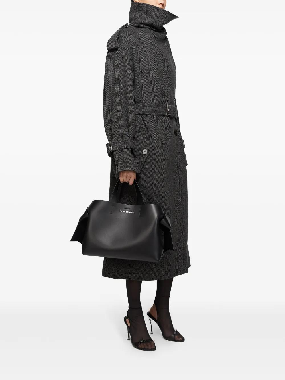 black calf leather press-stud fastening two top handles logo stamp to the front internal zip-fastening pocket