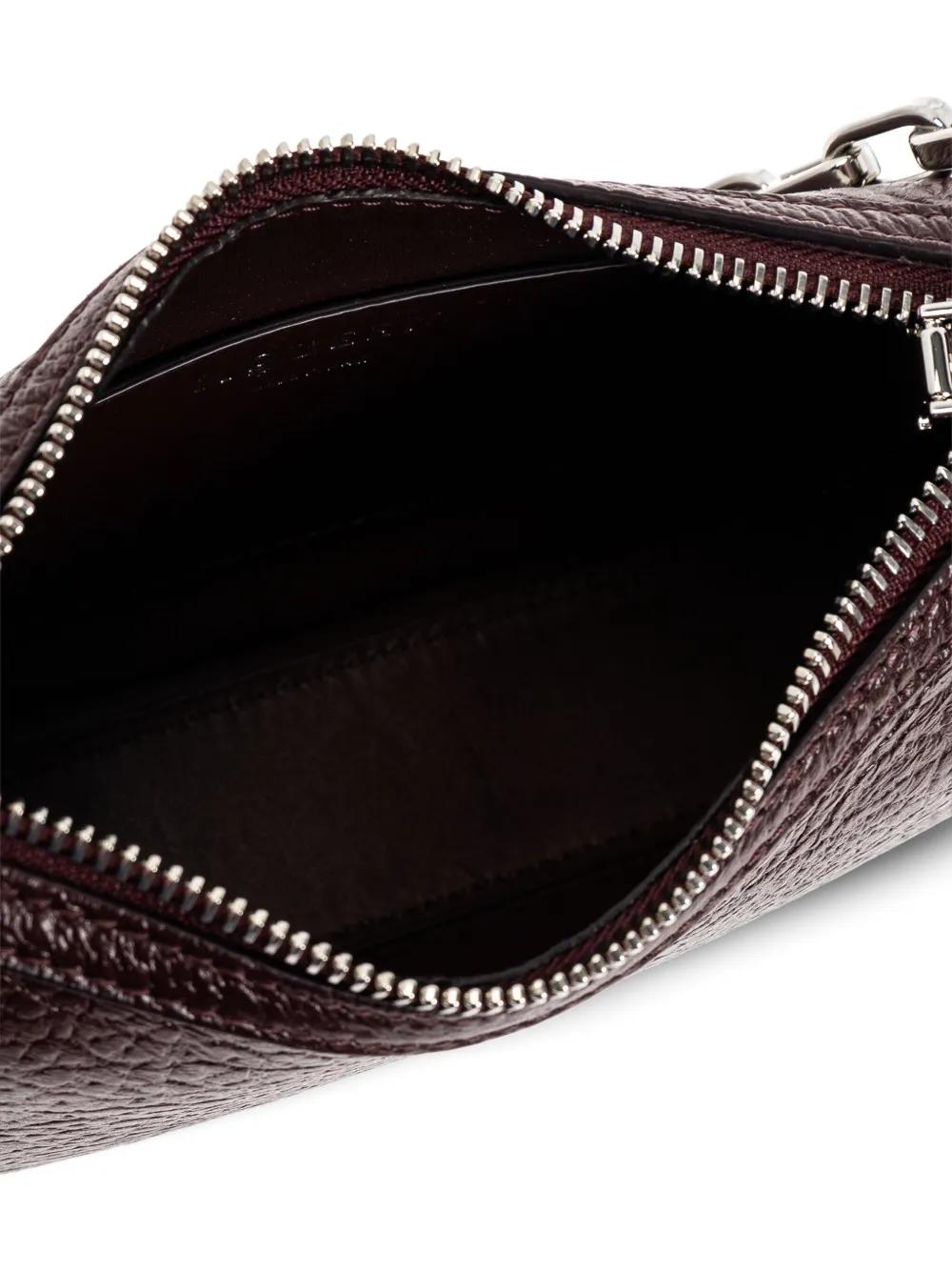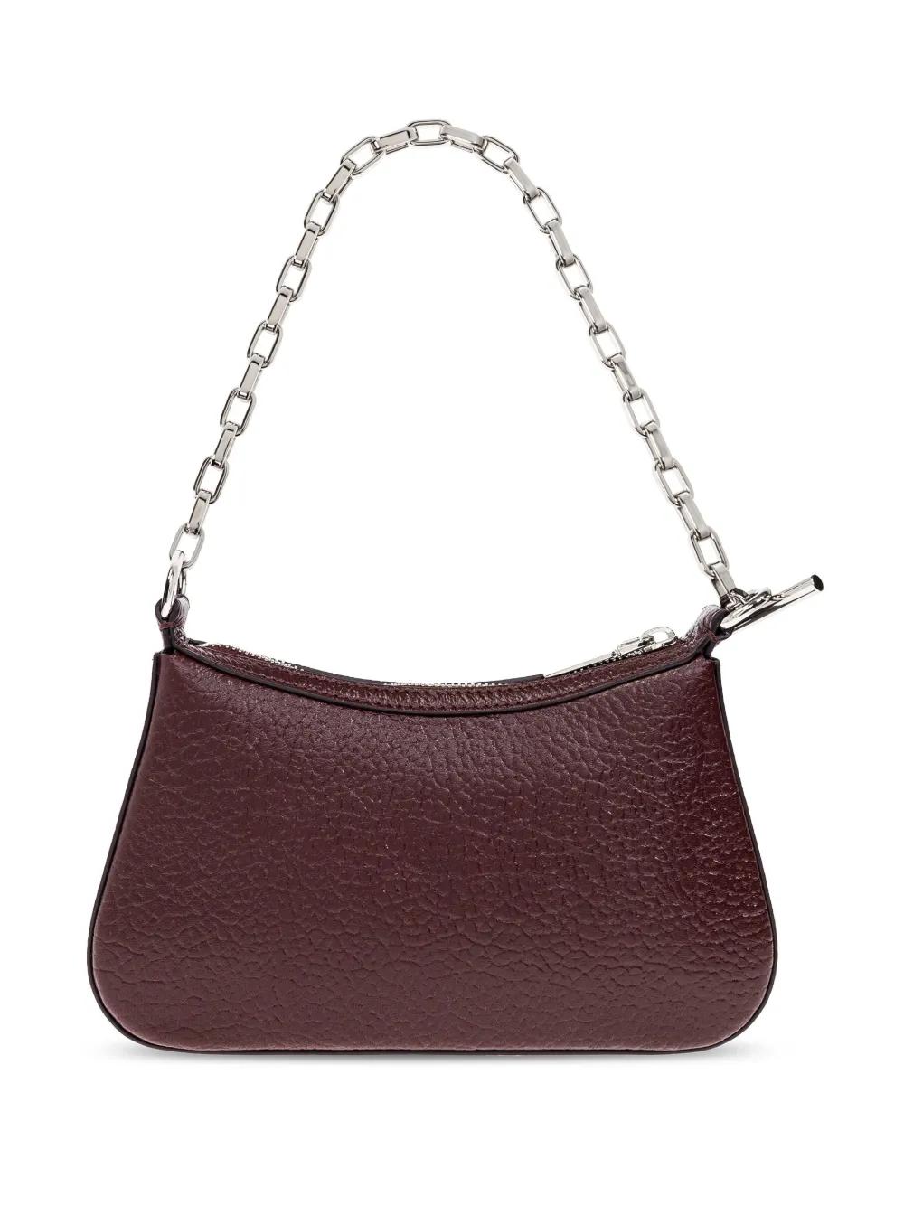 oxblood red top zip fastening single chain-link top handle logo stamp to the front internal logo patch