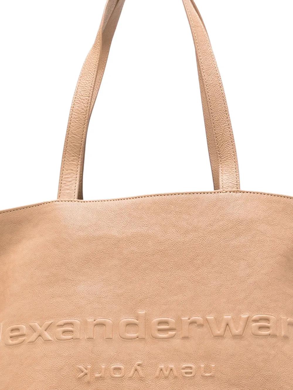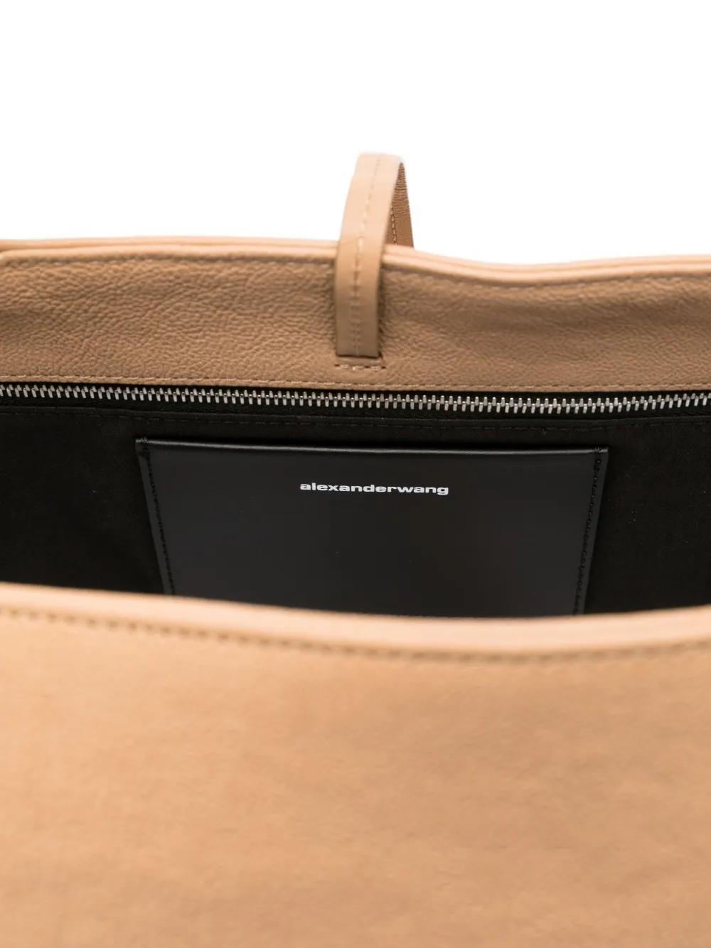 beige calf leather embossed logo top handles zip fastening internal pocket