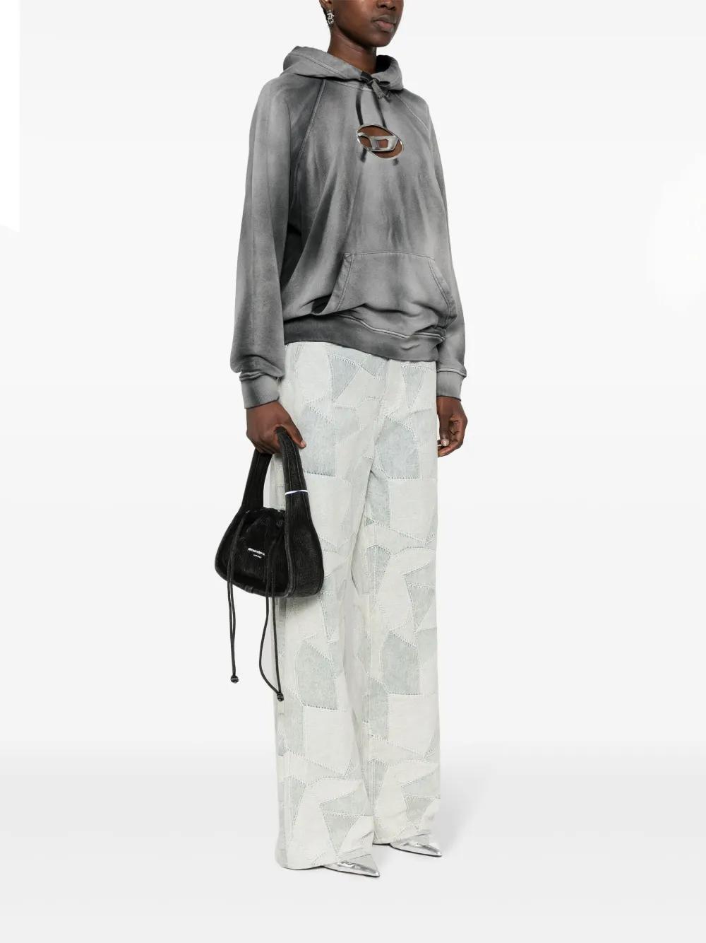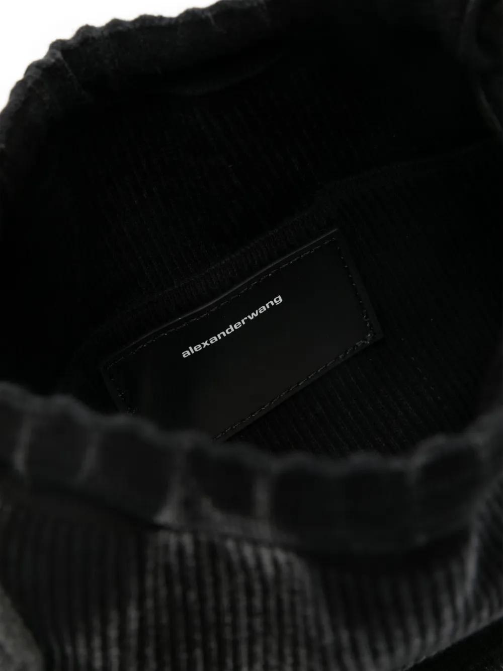 dark grey fine ribbed faded effect single flat top handle logo print to the front internal patch pocket internal logo patch unlined top drawstring fastening