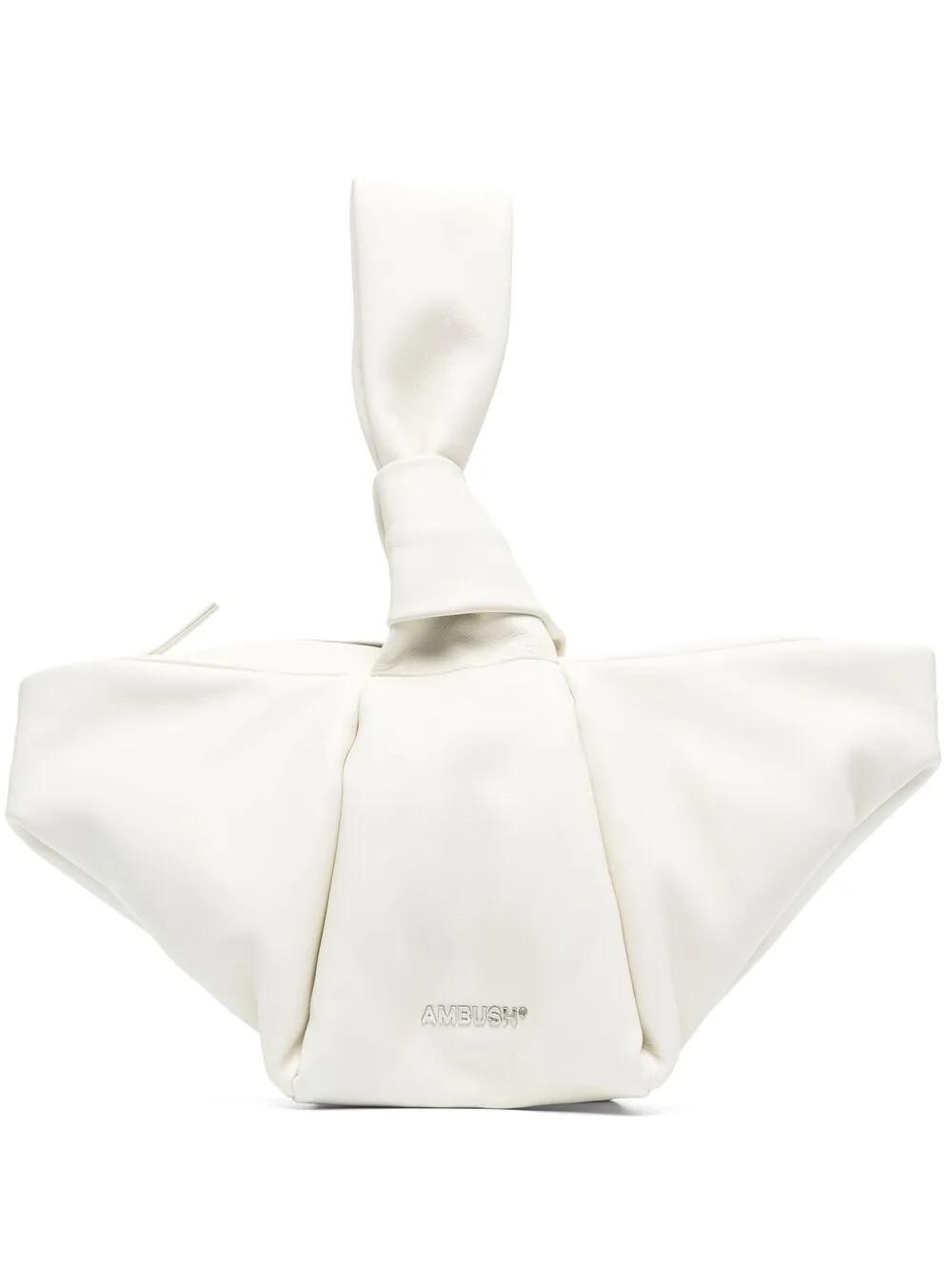 white lambskin/cotton silver-tone logo plaque knot detailing top zip fastening