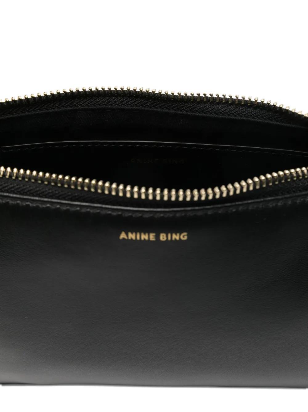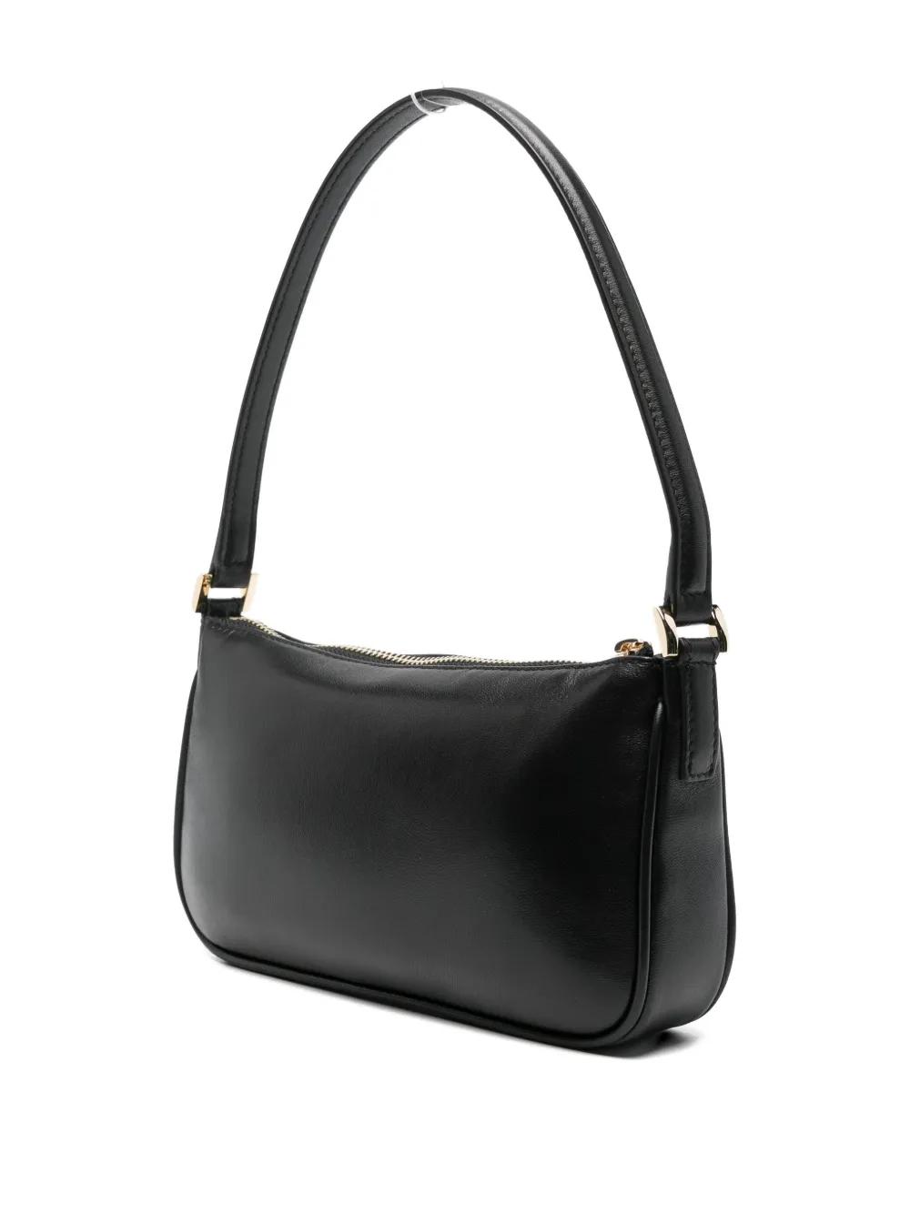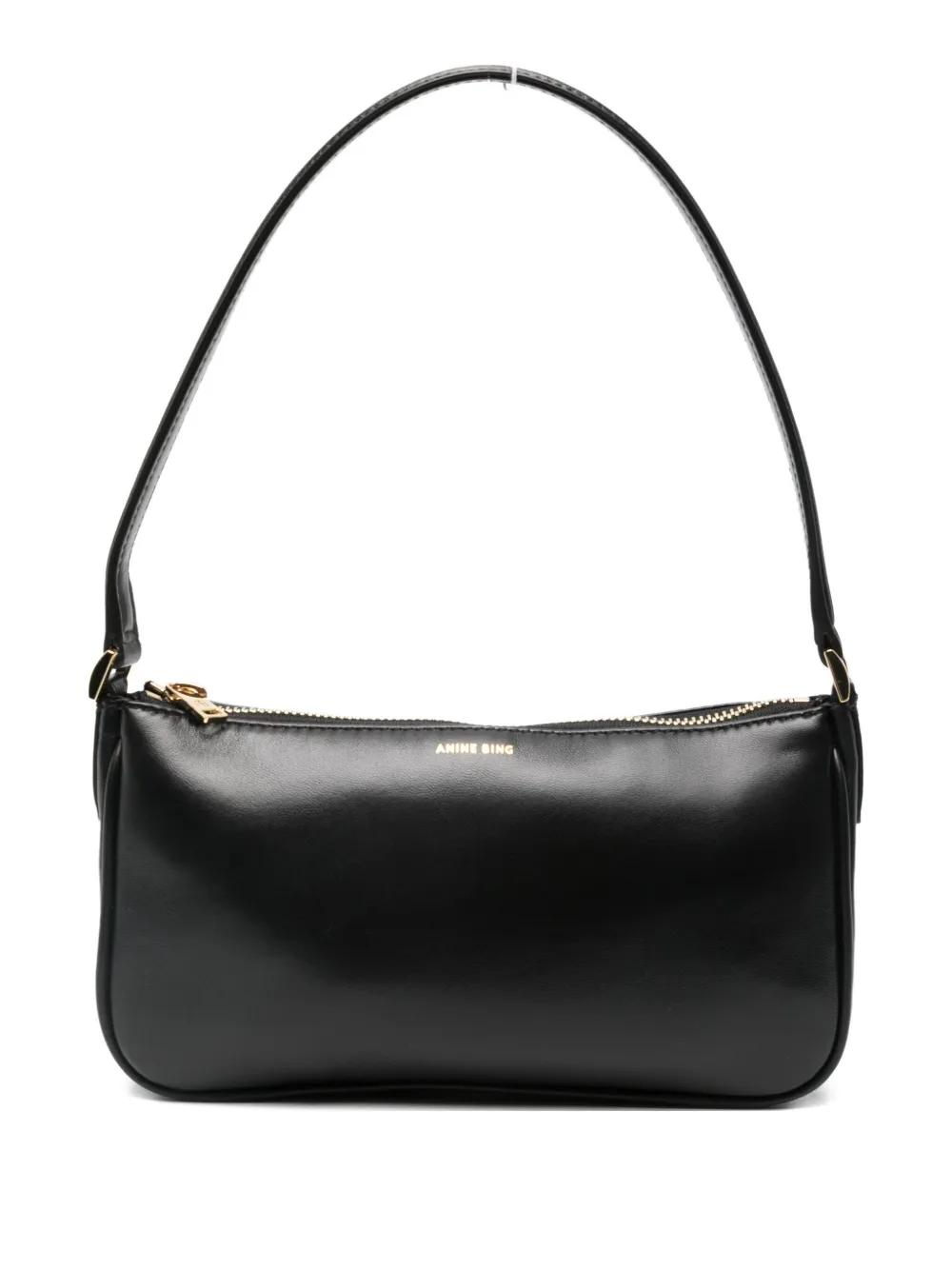 black calf leather top zip fastening single top handle gold-tone logo lettering
