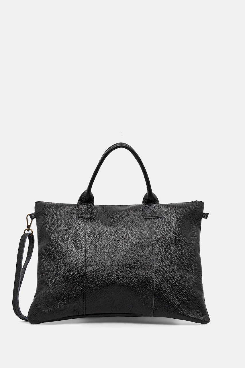 - Zapięcie na suwak. - Posiada uchwyty i odpinany pasek z regulacją. - Mieści format A4. - Model z podszewką. - Kieszonka wewnętrzna zapinana na suwak. - Dołączony tekstylny worek zabezpiecza produkt przed kurzem. - Długość minimalna paska: 70 cm. - Długość maksymalna paska: 130 cm. - Długość uchwytów: 28 cm. - Wysokość: 25 cm. - Szerokość u podstawy: 37 cm.