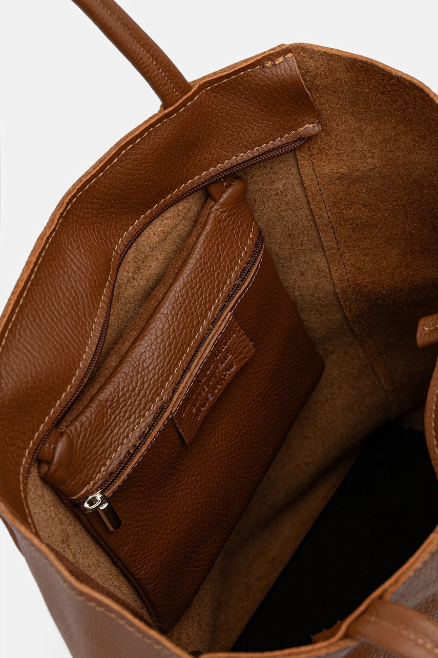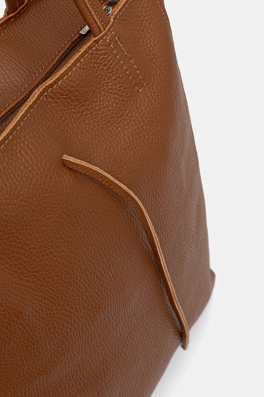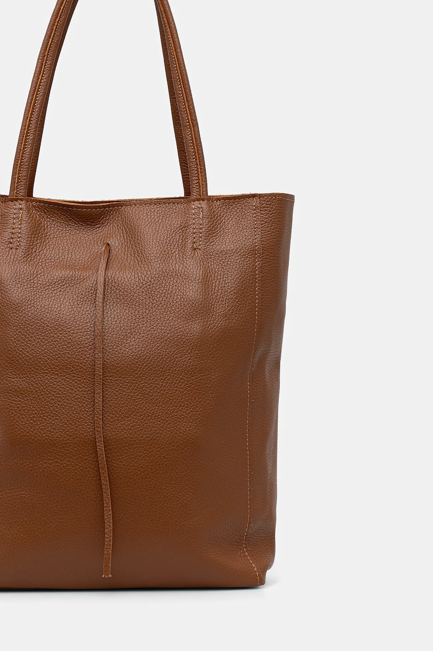 - Zapięcie na suwak. - Uchwyty dla komfortowego noszenia w dłoni lub na ramieniu. - Mieści format A4. - Kieszonka wewnętrzna zapinana na suwak. - Model bez podszewki. - Dołączony tekstylny worek zabezpiecza produkt przed kurzem. - Długość uchwytów: 54 cm. - Głębokość: 11 cm. - Wysokość: 36 cm. - Szerokość u podstawy: 28 cm.