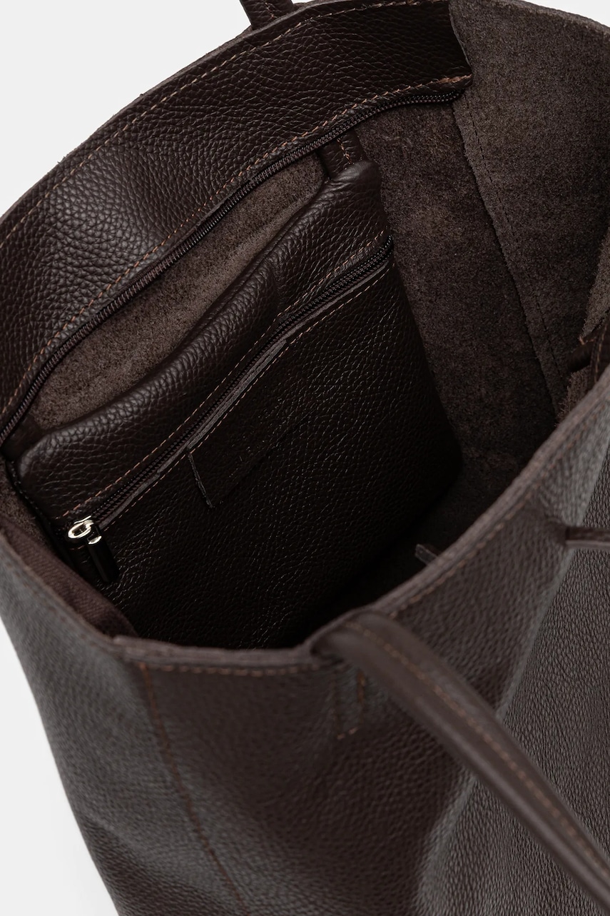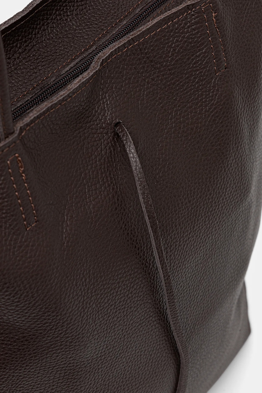 - Zapięcie na suwak. - Uchwyty dla komfortowego noszenia w dłoni lub na ramieniu. - Mieści format A4. - Kieszonka wewnętrzna zapinana na suwak. - Model bez podszewki. - Dołączony tekstylny worek zabezpiecza produkt przed kurzem. - Długość uchwytów: 54 cm. - Głębokość: 11 cm. - Wysokość: 36 cm. - Szerokość u podstawy: 28 cm.