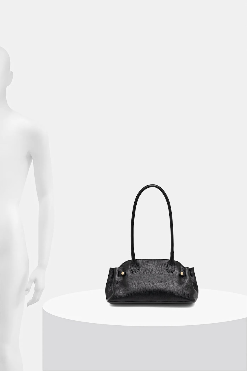 - Komora zapinana na suwak. - Wewnętrzna, wsuwana kieszonka umożliwia przechowywanie kluczy lub innych drobiazgów. - Usztywnione dno torebki pozwala zachować kształt produktu przez długi czas. - Torebka do noszenia w ręku lub na ramieniu. - Długie uchwyty. - Nie mieści formatu A4. - Model z podszewką. - Dołączony tekstylny worek zabezpiecza produkt przed kurzem. - Liczba wsuwanych kieszeni wewnętrznych: 1. - Długość uchwytów: 64 cm. - Głębokość: 12 cm. - Wysokość: 16 cm. - Szerokość u podstawy: 31 cm.