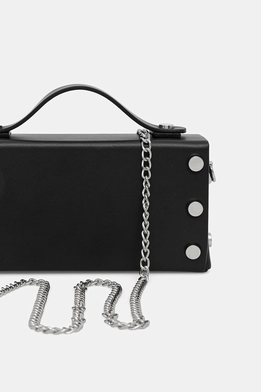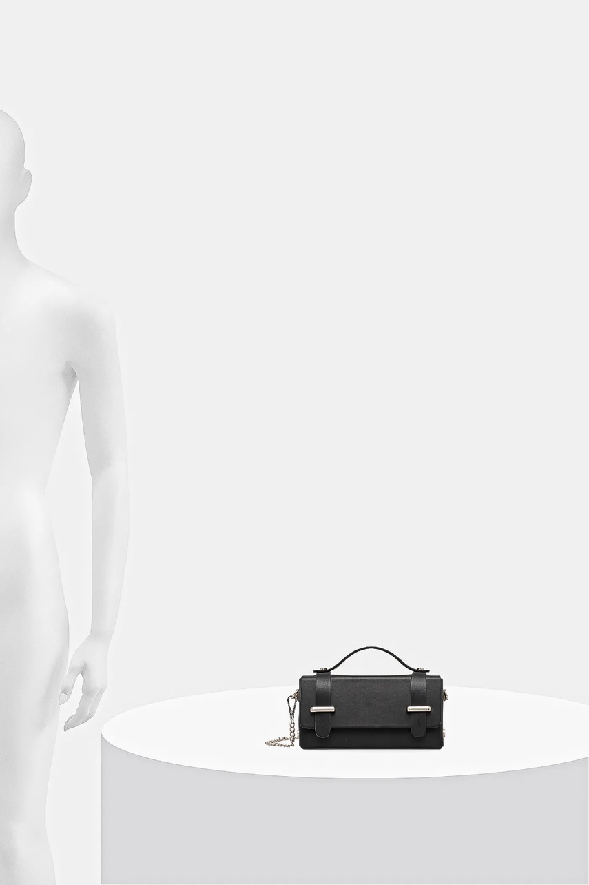- Zapięcie na magnes i zatrzaski. - Uchwyt do ręki. - Model z ozdobnym, dopinanym łańcuszkiem. - Wewnętrzna, wsuwana kieszeń, która ułatwia bezpieczne przechowywanie drobiazgów. - Dołączony tekstylny worek zabezpiecza produkt przed kurzem. - Nie mieści formatu A4. - Długość paska: 116 cm. - Głębokość: 5 cm. - Wysokość: 10 cm. - Szerokość u podstawy: 19 cm.