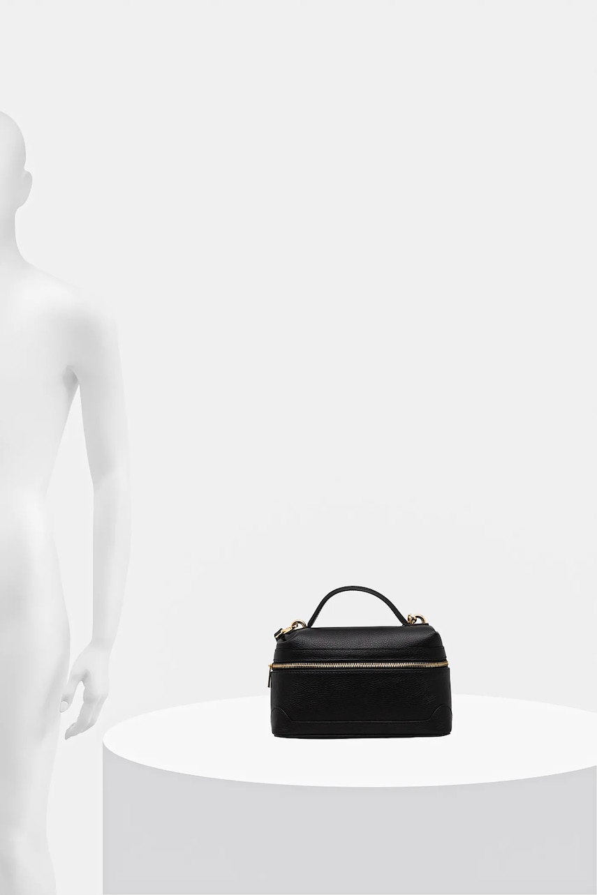 - Komora zapinana na suwak. - Kieszonka wewnętrzna zapinana na suwak pozwala przechować najpotrzebniejsze drobiazgi. - Usztywnione dno torebki pozwala zachować kształt produktu przez długi czas. - Torebka do noszenia w ręku lub na ramieniu. - Krótki uchwyt. - Odpinany, regulowany pasek umożliwia indywidualne dopasowanie. - Nie mieści formatu A4. - Model z podszewką. - Dołączony tekstylny worek zabezpiecza produkt przed kurzem. - Liczba zapinanych na suwak kieszeni wewnętrznych: 1. - Długość minimalna paska: 110 cm. - Długość maksymalna paska: 125 cm. - Długość uchwytu: 19 cm. - Głębokość: 9 cm. - Wysokość: 15,5 cm. - Szerokość u podstawy: 25 cm.