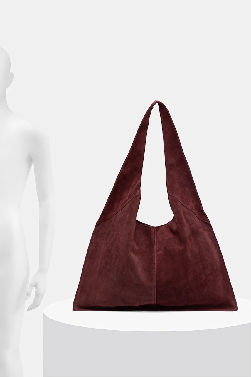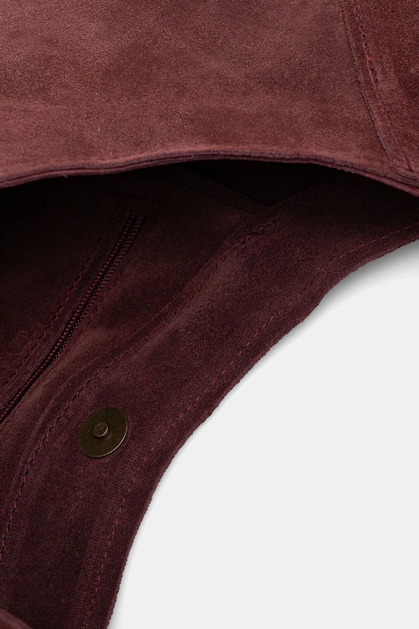 - Komora zapinana na magnes. - Kieszonka wewnętrzna zapinana na suwak pozwala przechować najpotrzebniejsze drobiazgi. - Torebka do noszenia w ręku lub na ramieniu. - Długie uchwyty. - Mieści format A4. - Model bez podszewki. - Dołączony tekstylny worek zabezpiecza produkt przed kurzem. - Liczba zapinanych na suwak kieszeni wewnętrznych: 1. - Długość uchwytów: 82 cm. - Głębokość: 1 cm. - Wysokość: 31,5 cm. - Szerokość u podstawy: 48 cm.