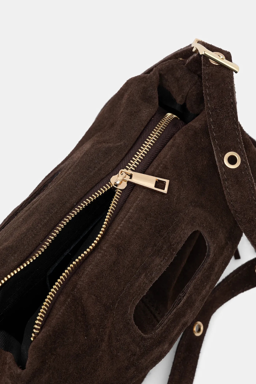 - Komora zapinana na suwak. - Posiada uchwyty i odpinany pasek z regulacją. - Zapinana na suwak kieszonka wewnętrzna, która ułatwia bezpieczne przechowywanie telefonu lub innych drobiazgów. - Nie mieści formatu A4. - Model z podszewką. - Dołączony tekstylny worek zabezpiecza produkt przed kurzem. - Długość uchwytów: 33 cm. - Głębokość: 11 cm. - Wysokość: 21 cm. - Szerokość u podstawy: 29,5 cm.