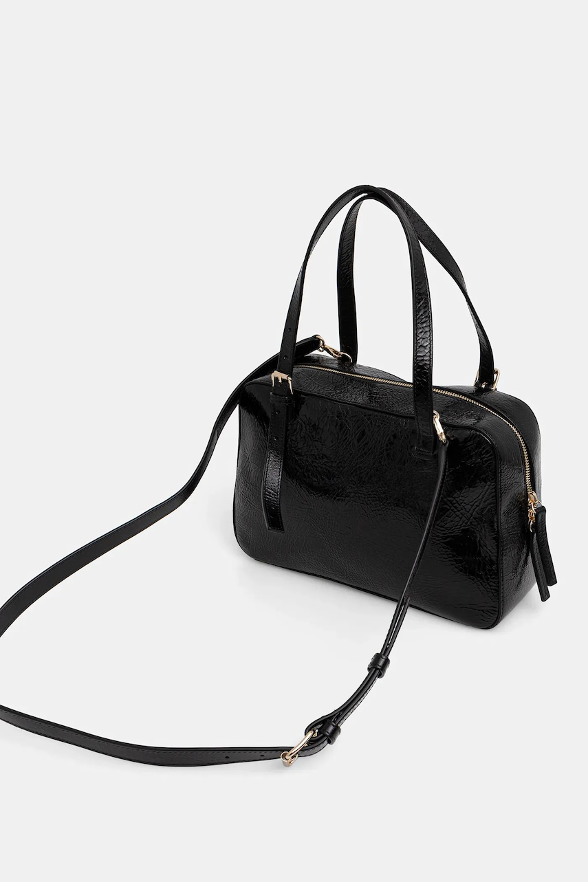 - Zapięcie na suwak. - Wewnętrzna, wsuwana kieszeń na telefon. - Model z podszewką. - Regulowane uchwyty. - Odpinany pasek z regulacją. - Dołączony tekstylny worek zabezpiecza produkt przed kurzem. - Długość minimalna paska: 99 cm. - Długość maksymalna paska: 110 cm. - Maksymalna długość uchwytów: 52 cm. - Minimalna długość uchwytów: 40 cm. - Głębokość: 10 cm. - Wysokość: 18 cm. - Szerokość u podstawy: 28 cm.