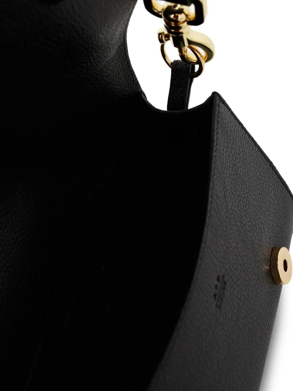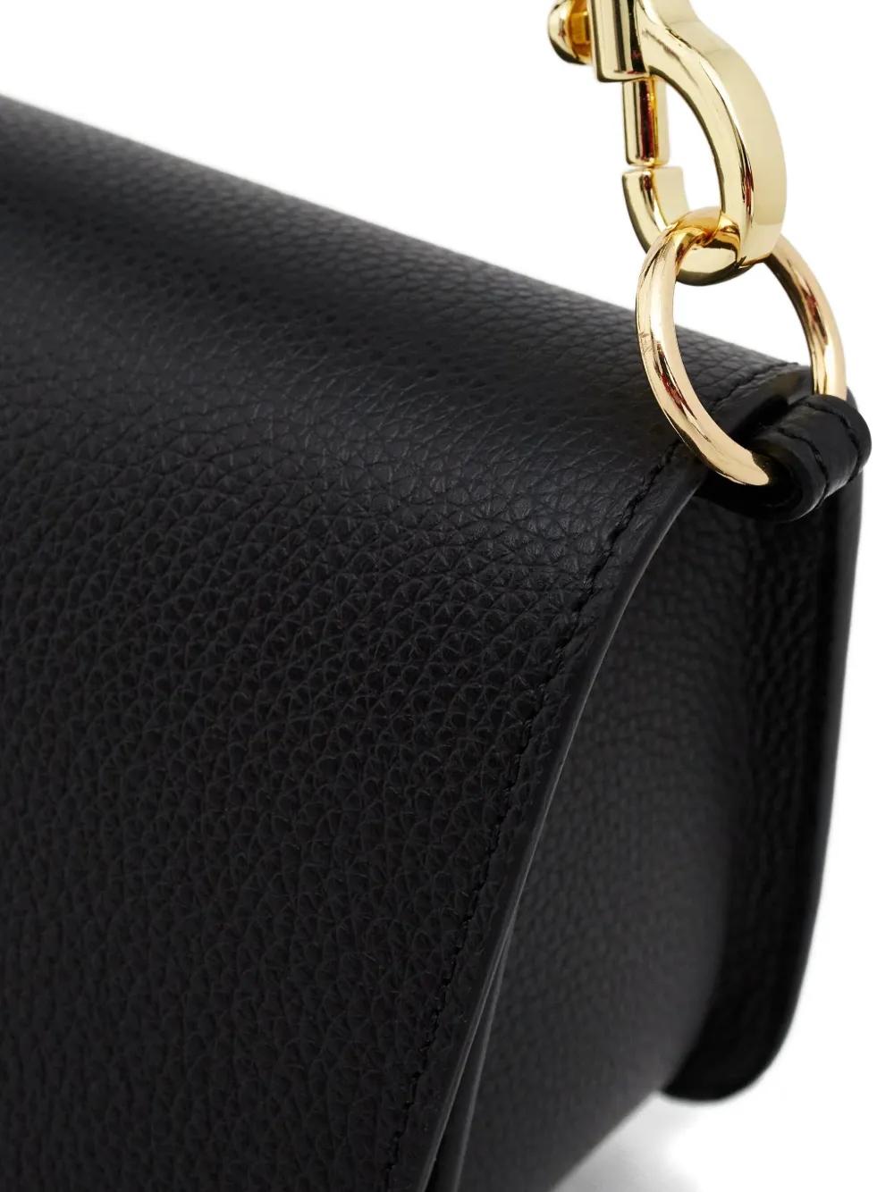 black magnetic closure gold-tone hardware detachable shoulder straps internal slip pocket one main compartment