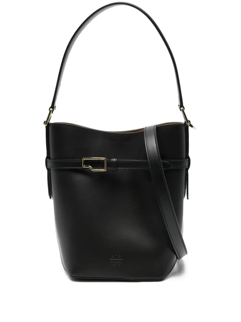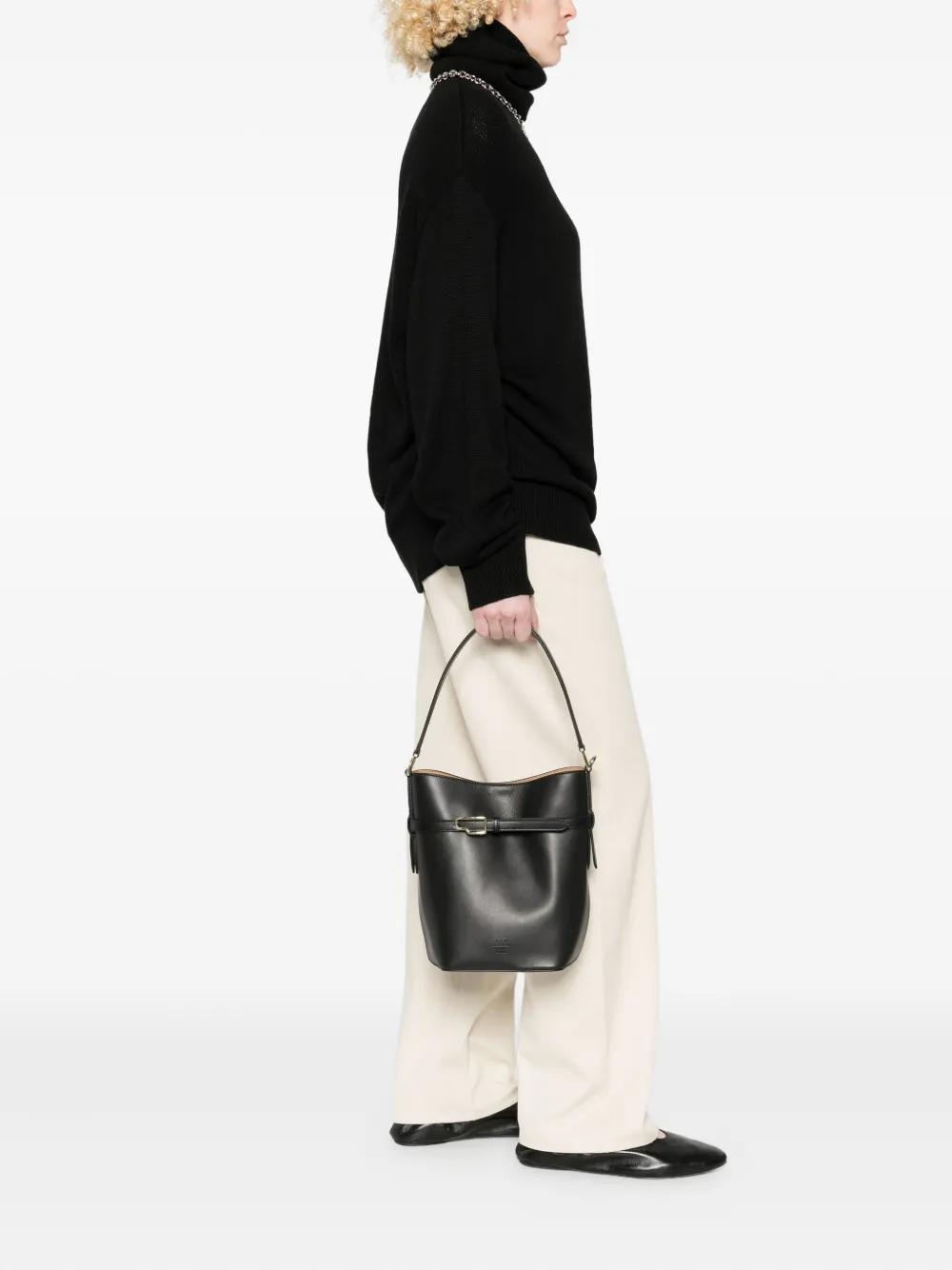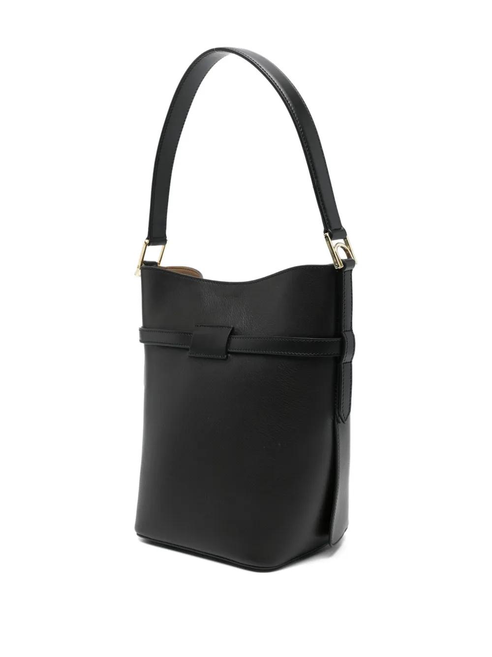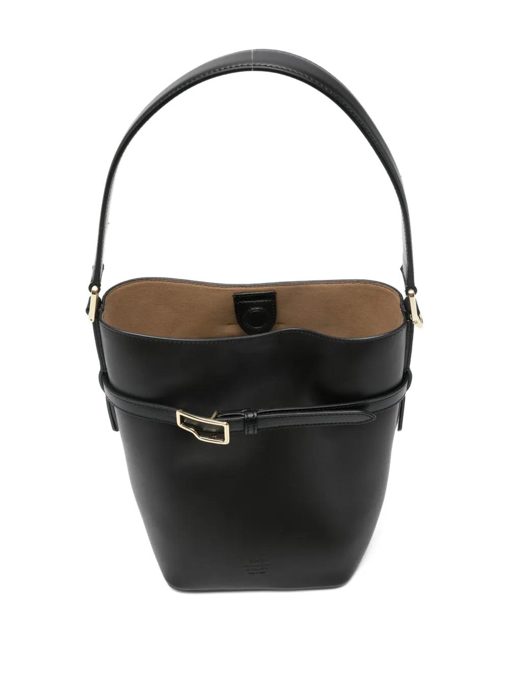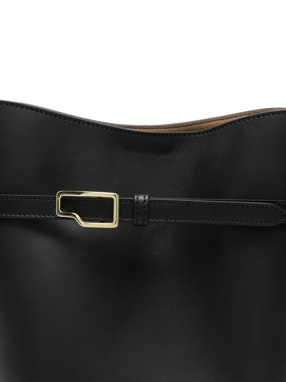 black leather buckled strap top handle detachable shoulder strap concealed magnetic fastening main compartment