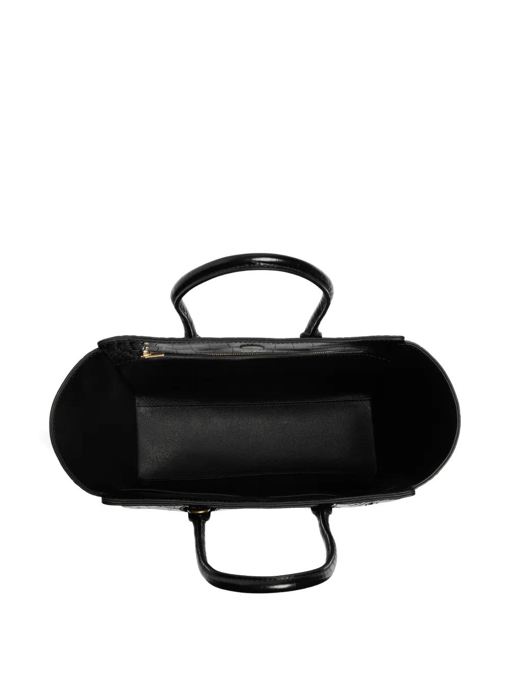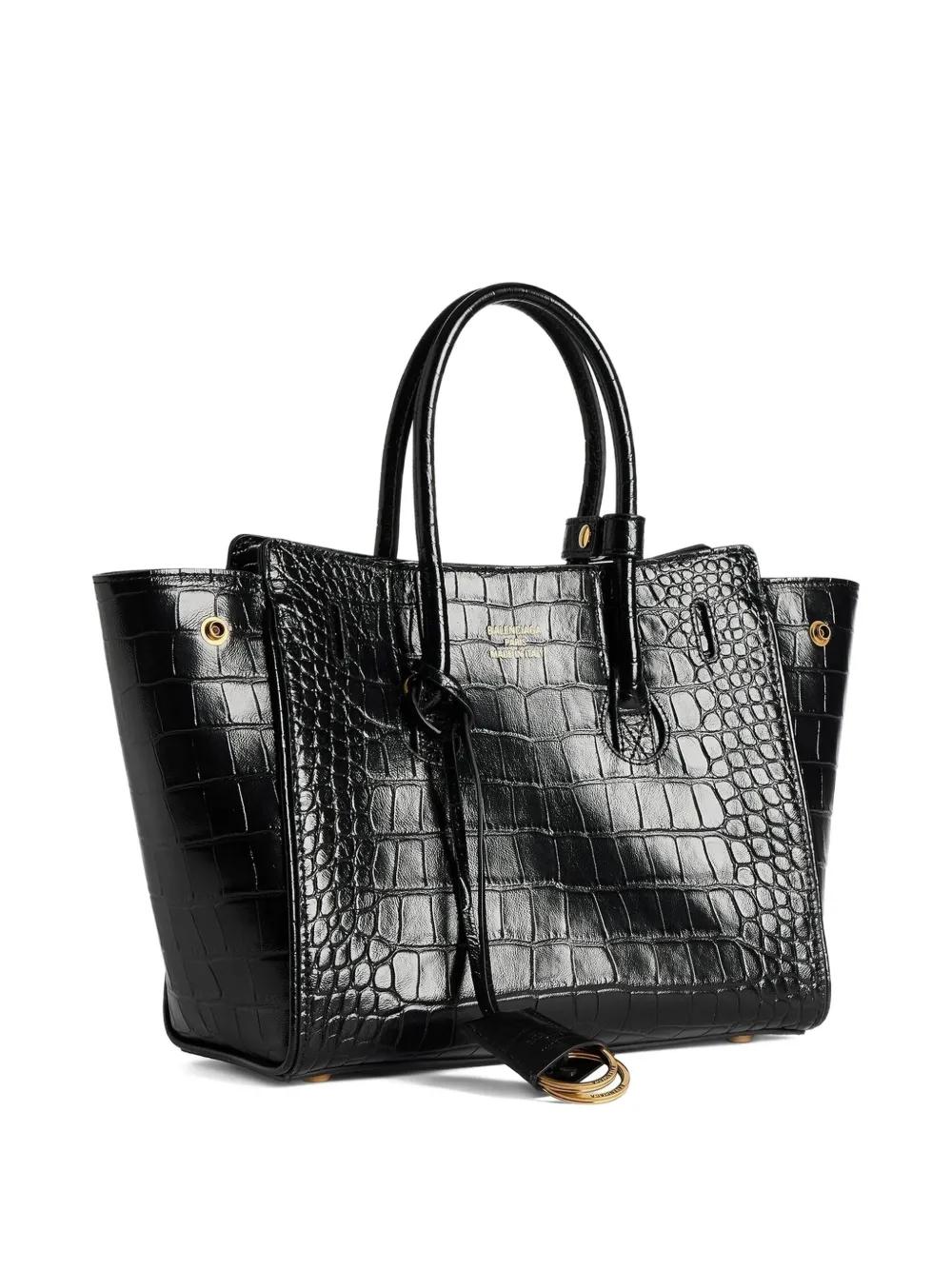 black calf leather embossed crocodile-effect double top-handle detachable and adjustable shoulder strap gold-tone hardware