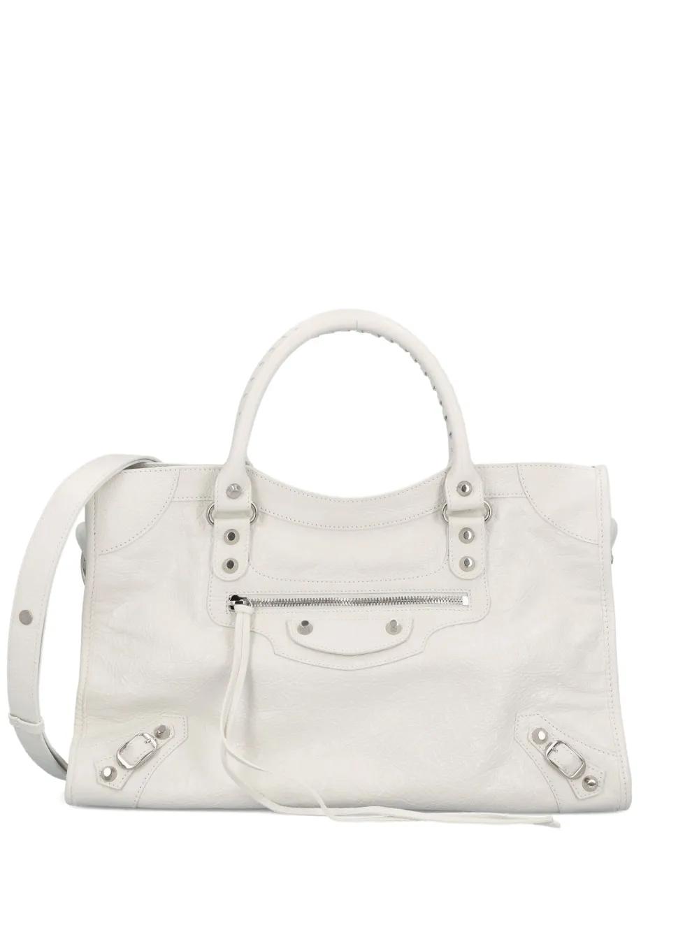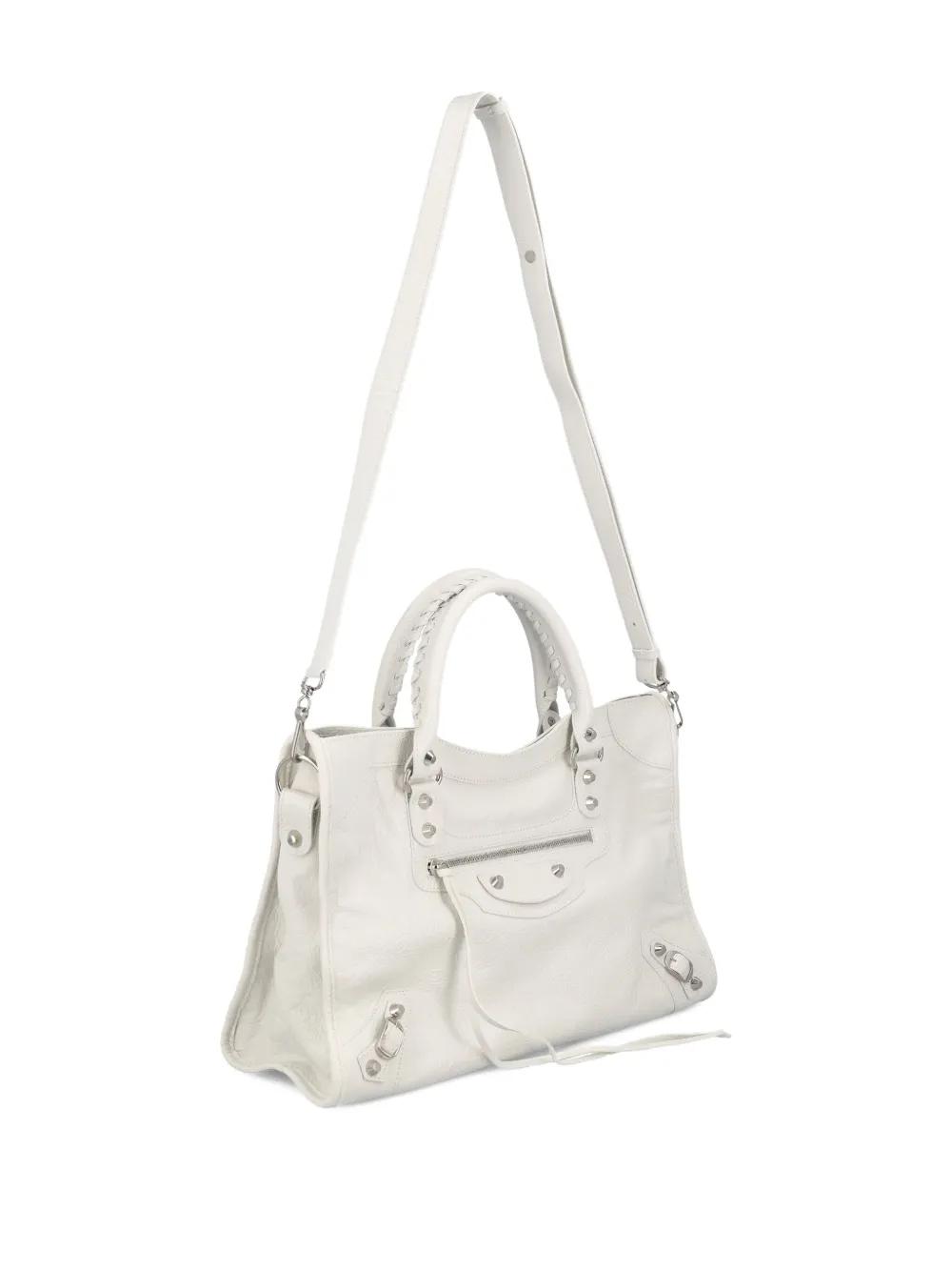 white silver-tone trim braided handles removable shoulder strap top zip closure This piece comes complete with a protective dust bag.