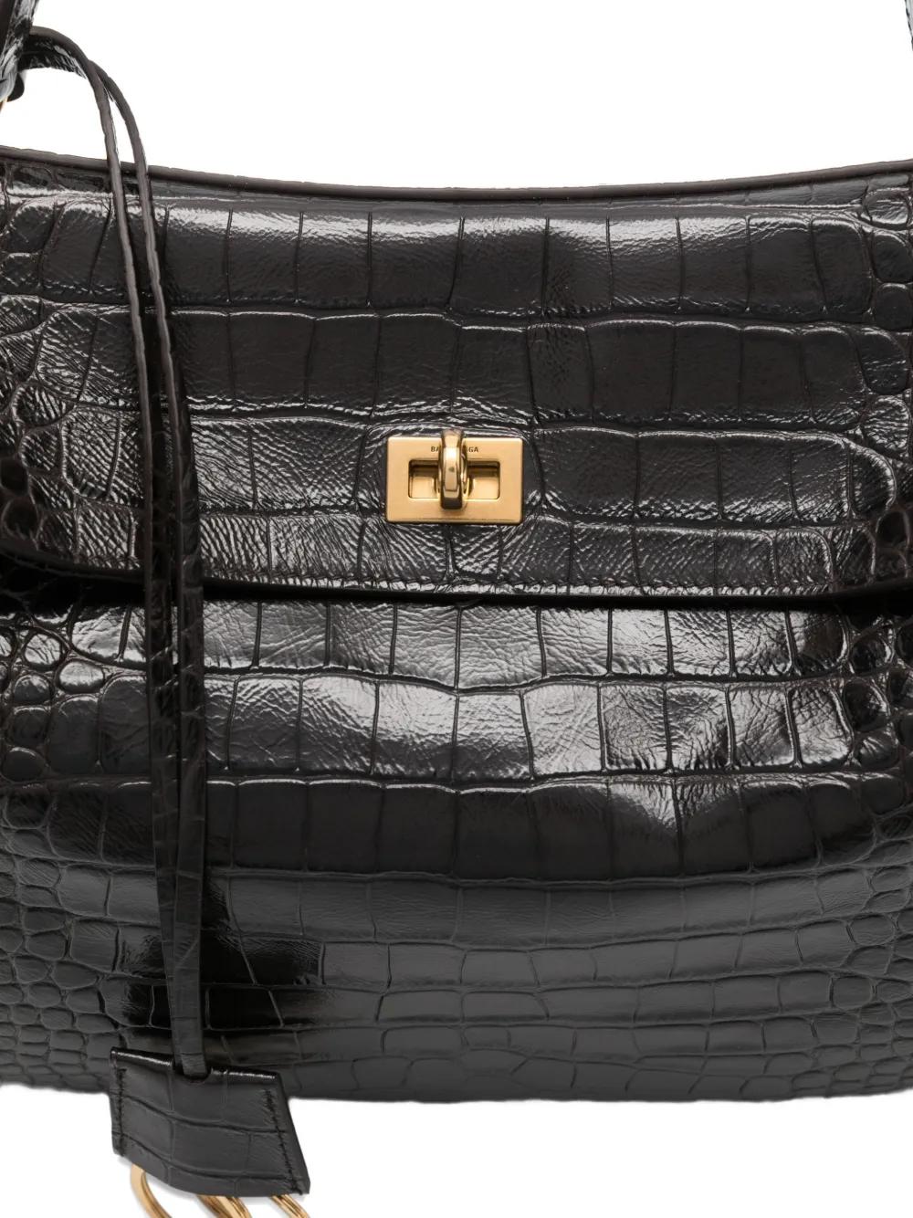 brown top handle adjustable detachable shoulder strap turn-lock fastening metal feet removable cloche clés with two split rings partitioned compartment internal zip pocket This piece comes complete with a protective dust bag.