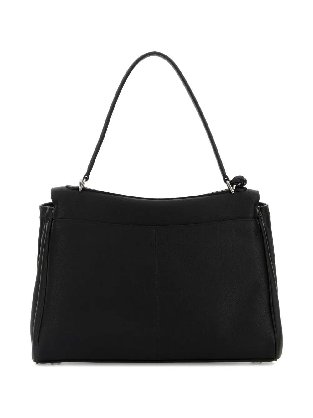 black calf leather top handle clasp fastening detachable shoulder strap silver-tone hardware