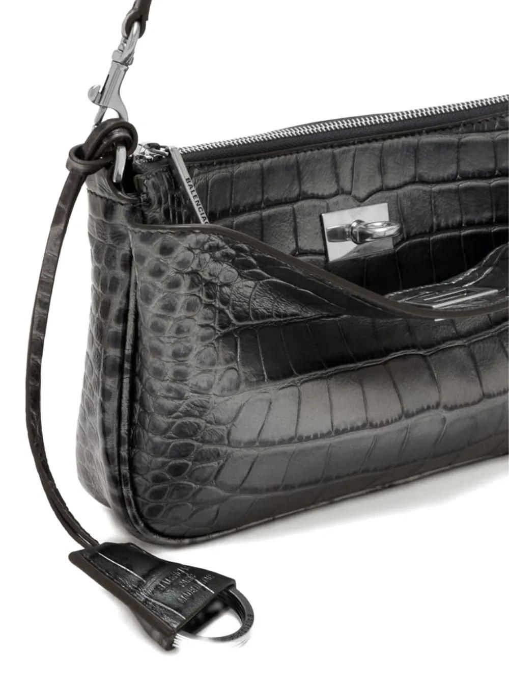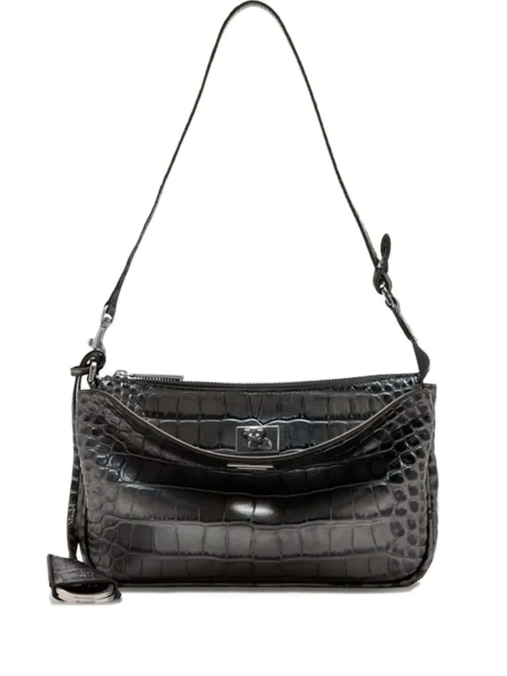 grey crocodile embossed top zip fastening adjustable strap silver-tone hardware
