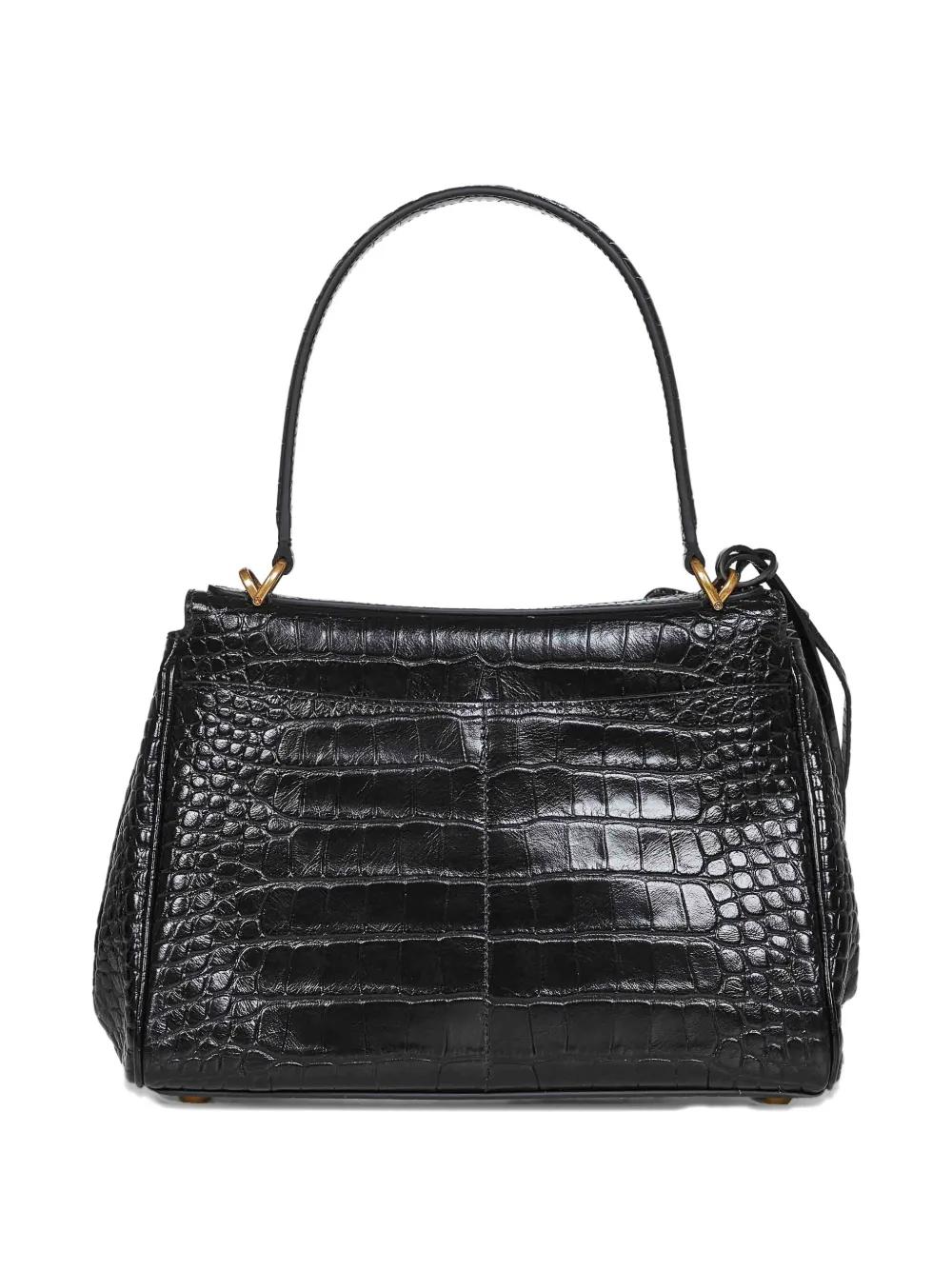 black crocodile embossed calfskin leather twist-lock fastening top handle detachable shoulder strap four brass feet antique gold-toned metal hardware