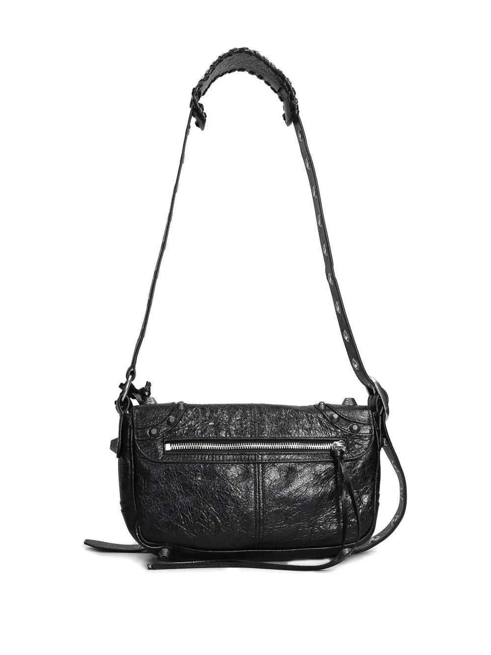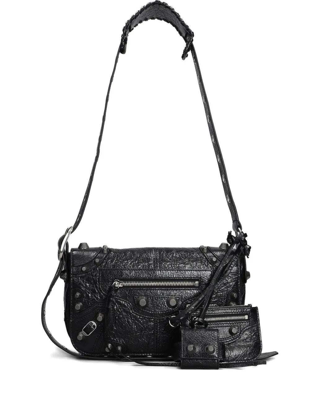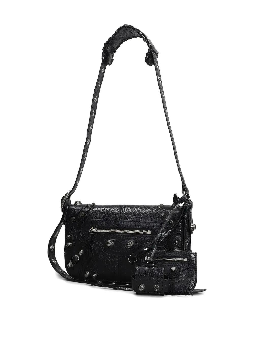 black braided top handle multiple zip pockets detachable coin purse stud embellishments adjustable strap