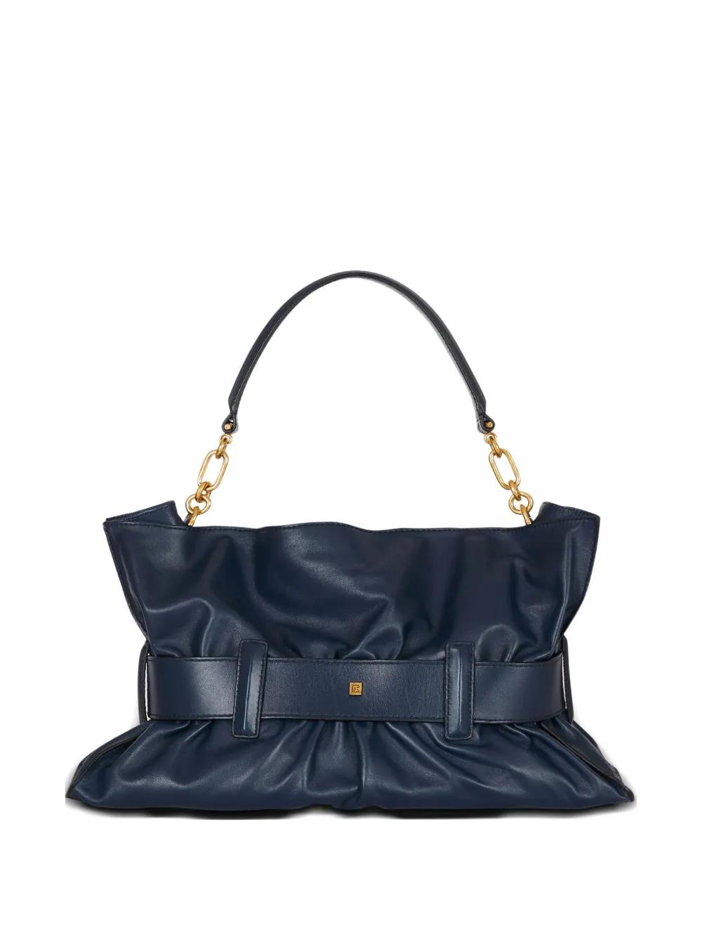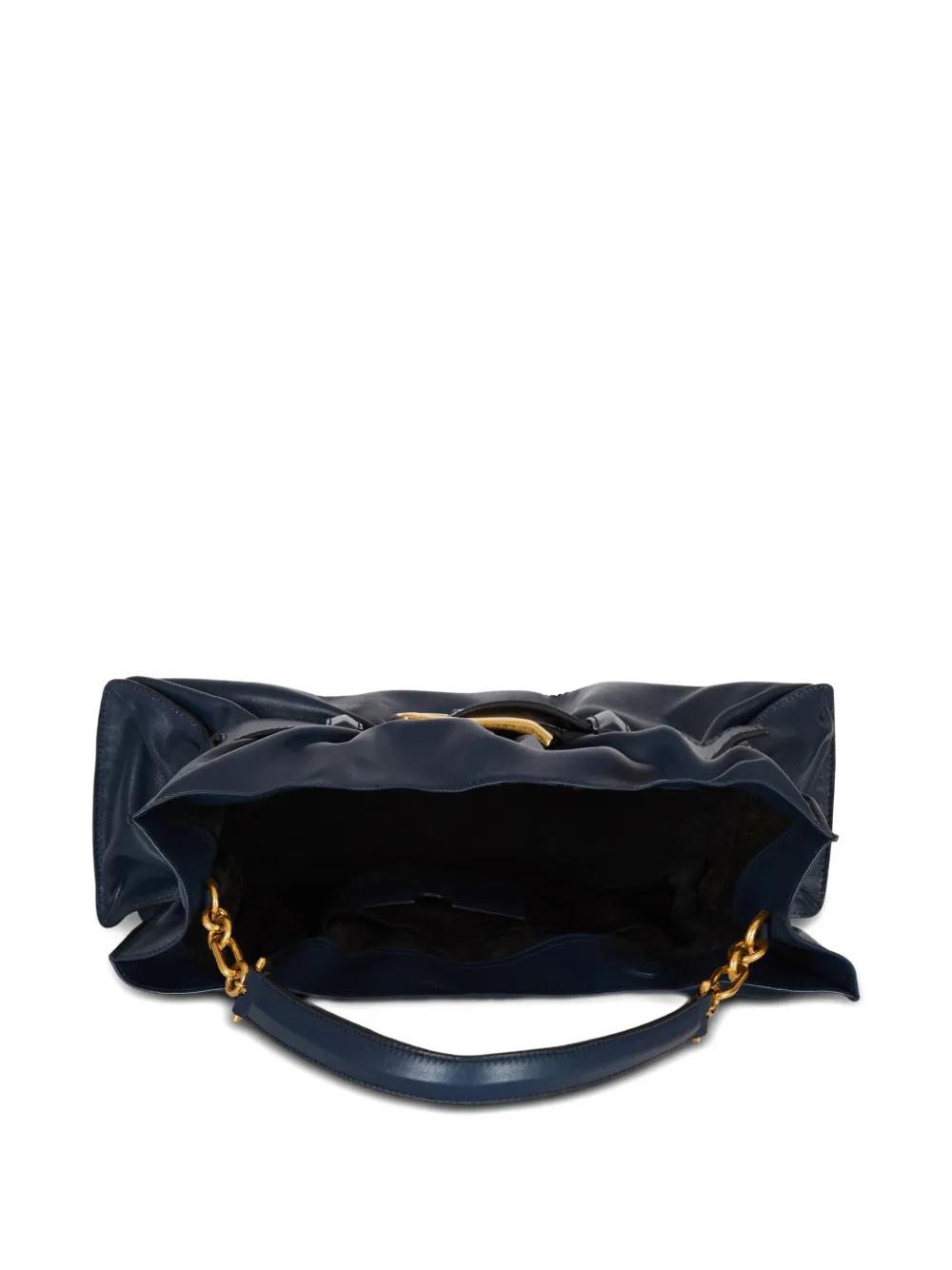 blue calfskin leather gathered detailing gold-tone buckle chain-link strap attachments top handle