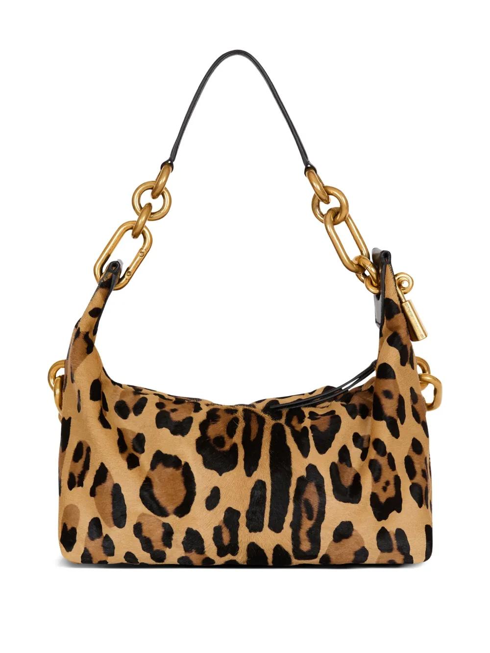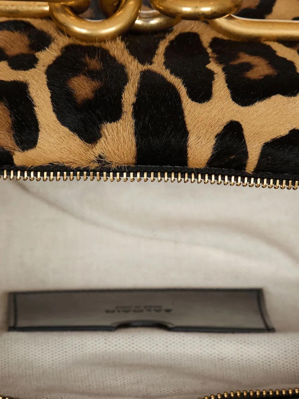 brown leopard print gold-tone chain strap padlock detail top zip fastening