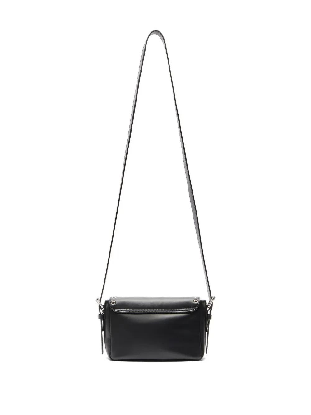 black eyelet detail butterfly charm embossed logo adjustable shoulder strap silver-tone hardware