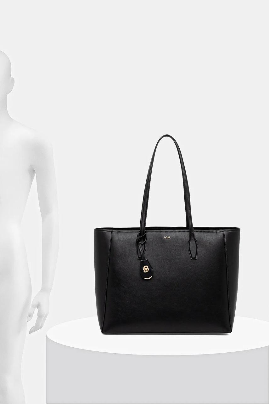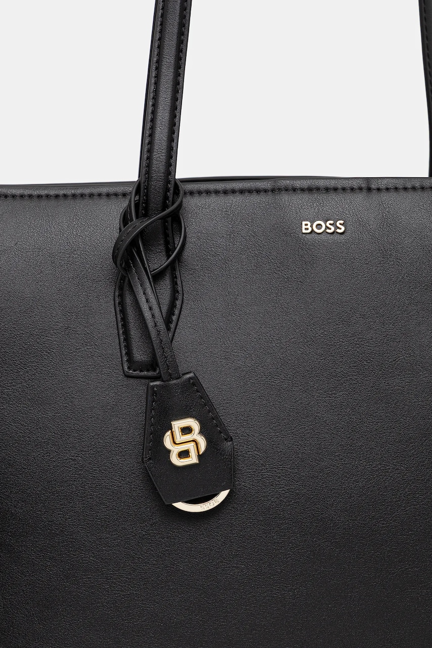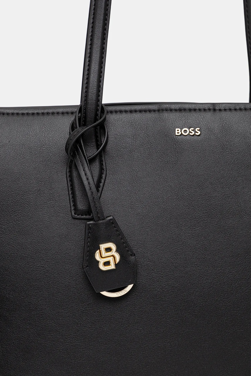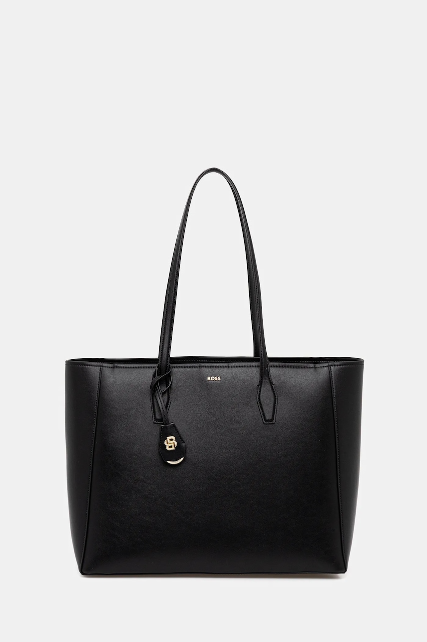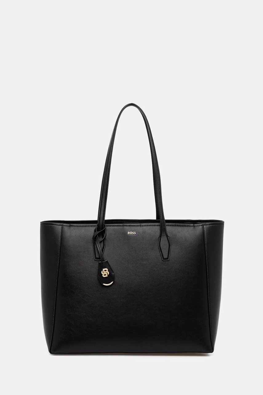 - Produkty z linii BETTER BOSS są wykonywane co najmniej w 60% z materiałów pozyskiwanych w bardziej ekologiczny sposób. - Zapięcie na magnes. - Długie uchwyty dla komfortowego noszenia w dłoni lub na ramieniu. - Model z podszewką. - Mieści format A4. - Kieszonka wewnętrzna zapinana na suwak. - Wsuwana kieszeń wewnętrzna. - Długość uchwytów: 67 cm. - Głębokość: 16 cm. - Wysokość: 31 cm. - Szerokość u podstawy: 38 cm.