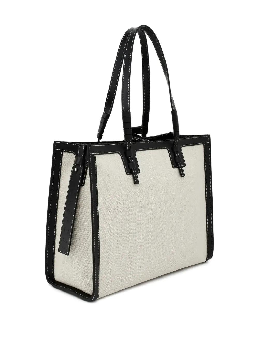 white leather trims double zip fastening main compartment internal zip-fastening pocket front logo appliqué