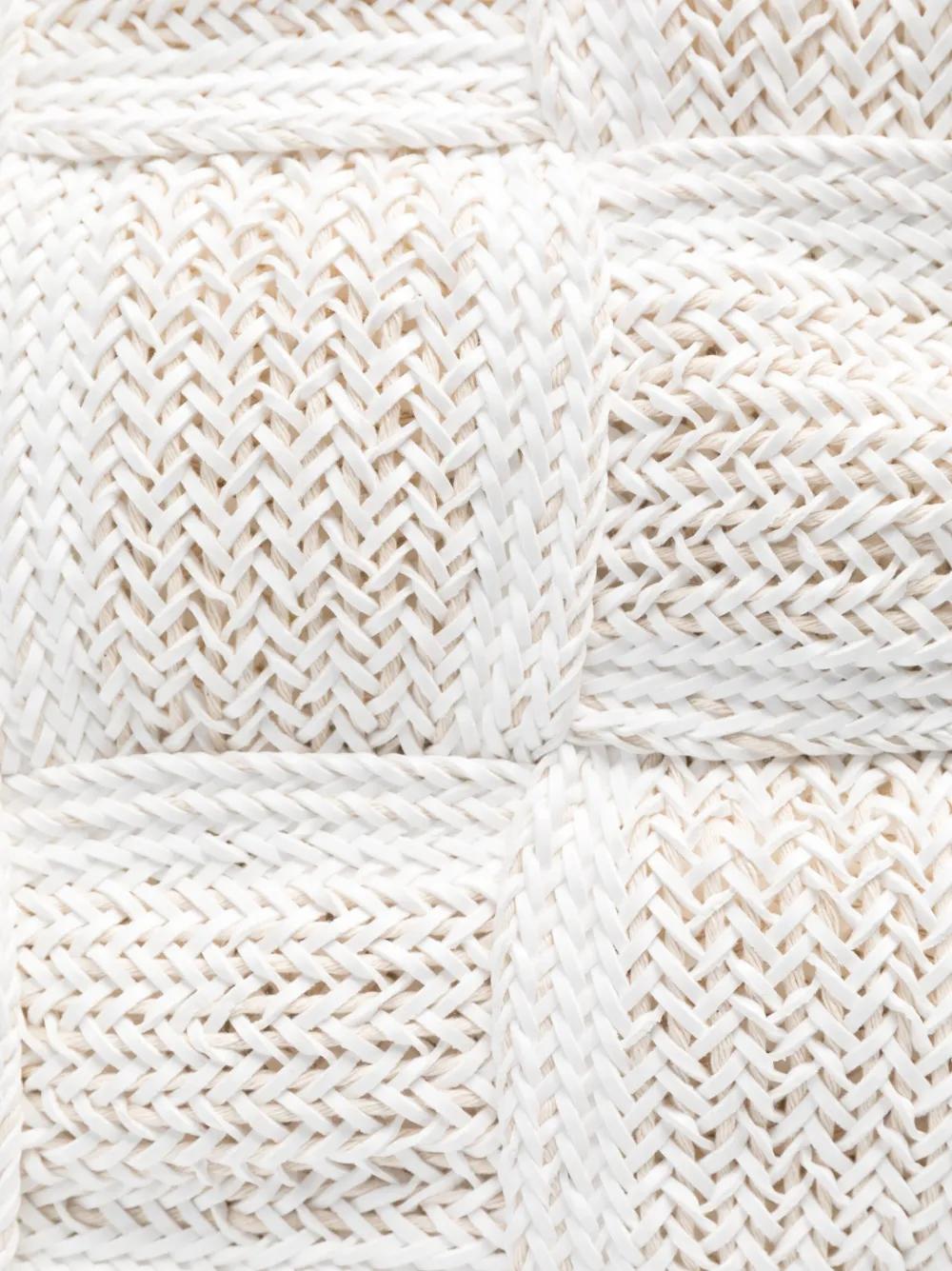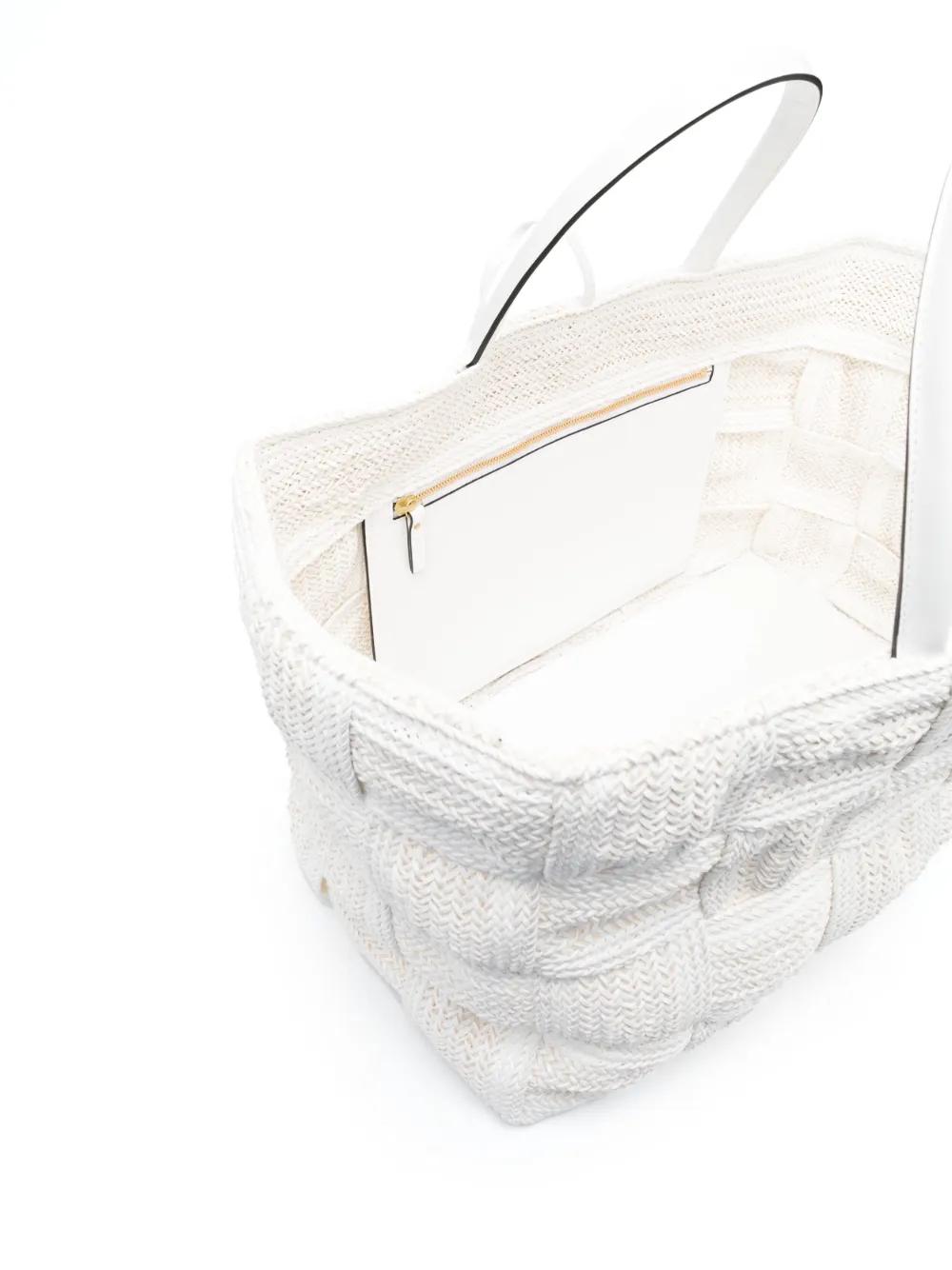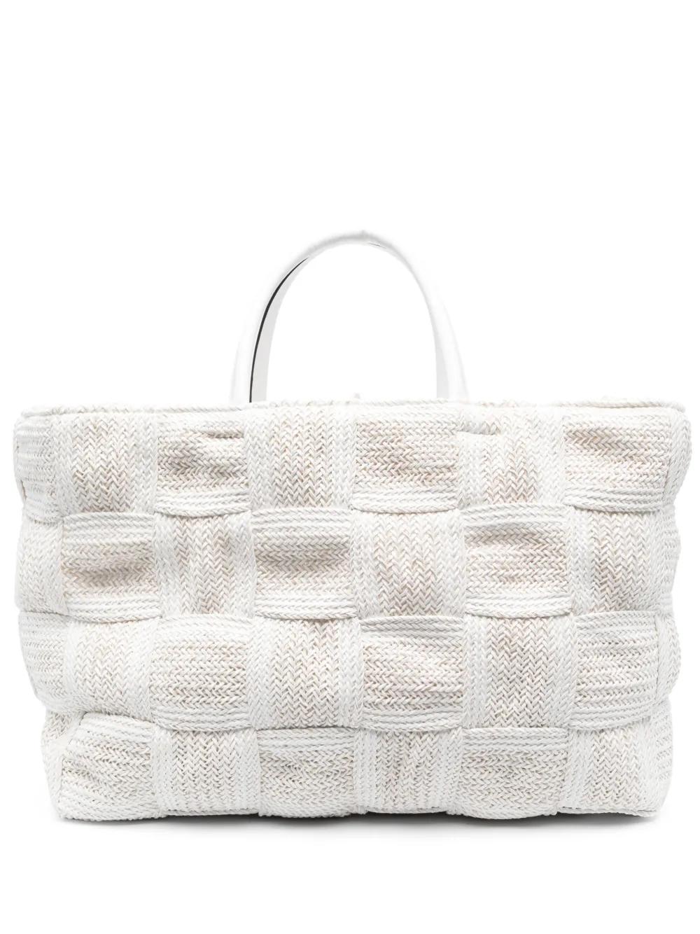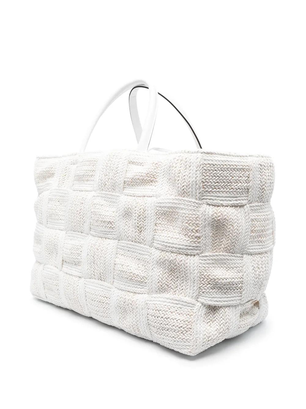 white calf leather interwoven design two top handles internal zip-fastening pocket main compartment