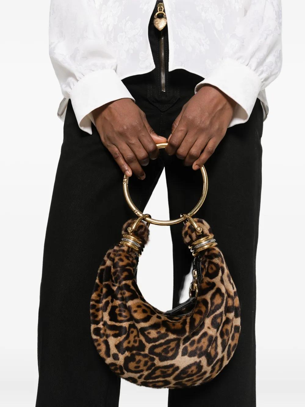 brown leopard print ring handle detachable strap gold-tone hardware zip fastening