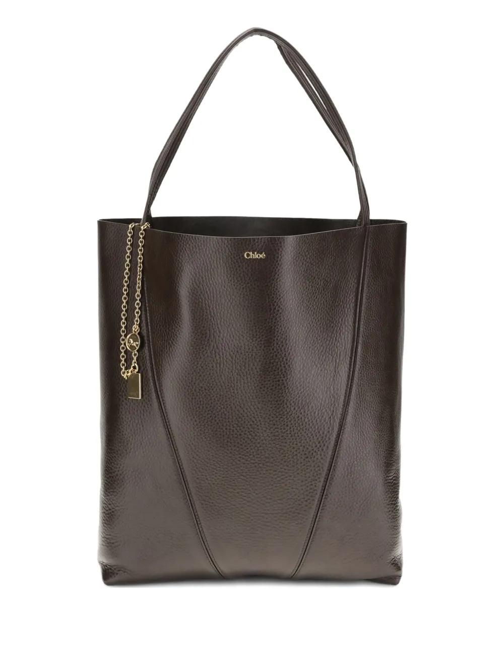 dark brown calf leather chain detail top handle gold-tone hardware grained texture