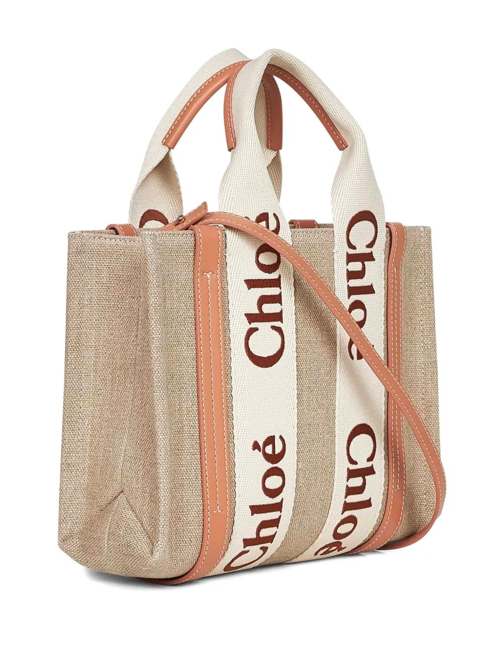 Chloé small Woody logo-detail linen tote bag - Neutrals