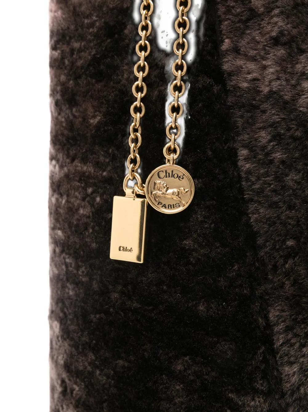 dark brown shearling chain detail charm detail two top handles