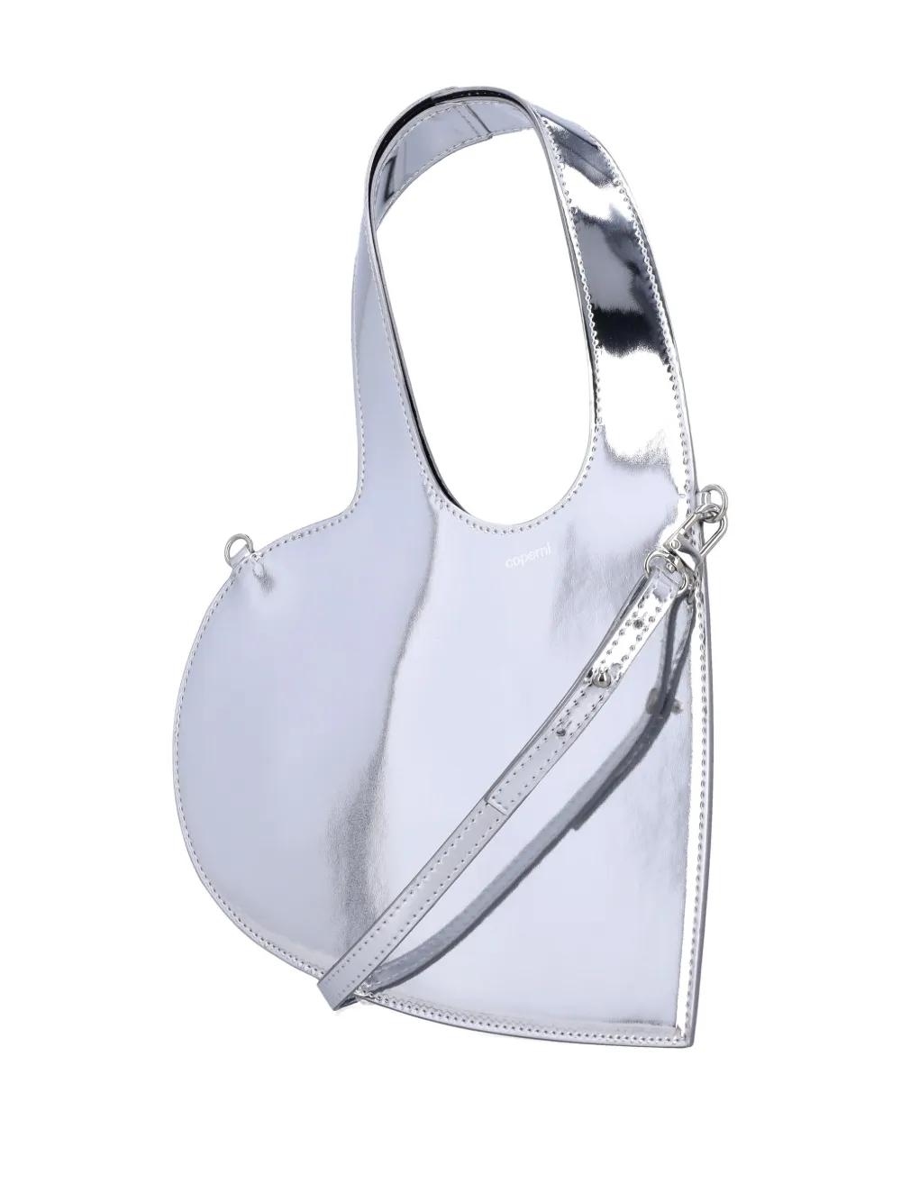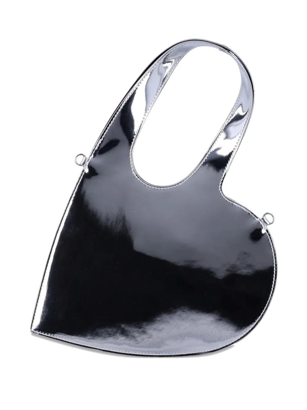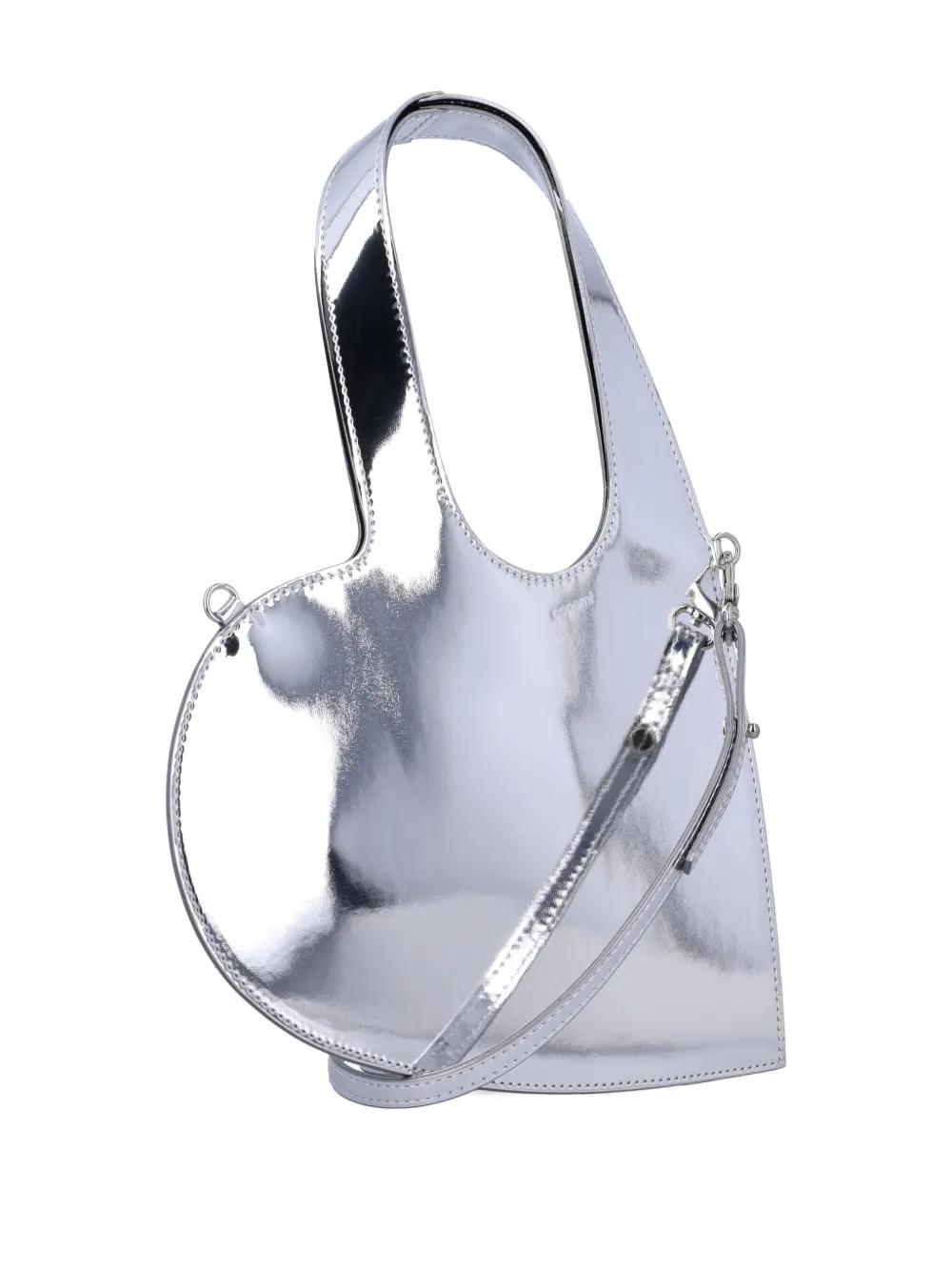 silver-tone open top single top handle detachable shoulder strap logo stamp to the front
