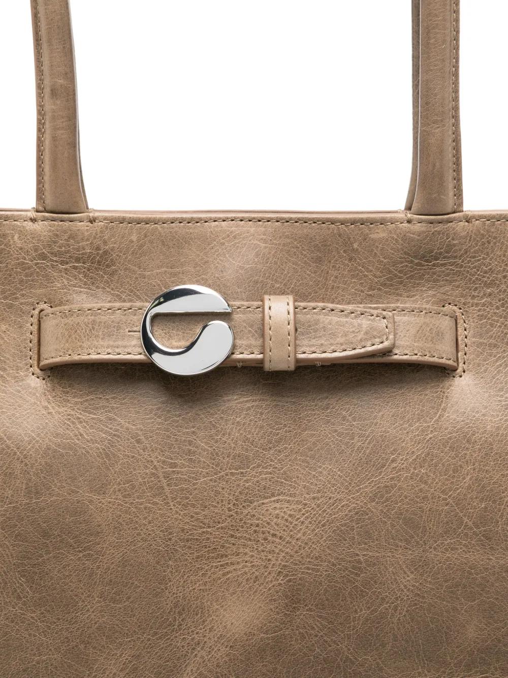 brown top handles silver-tone hardware zip closure internal slip pocket buckle detail This piece comes complete with a protective dust bag.