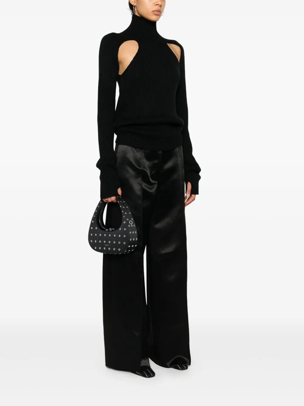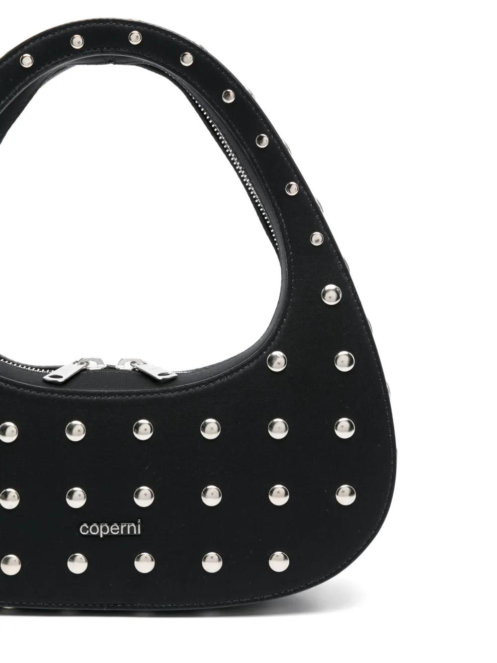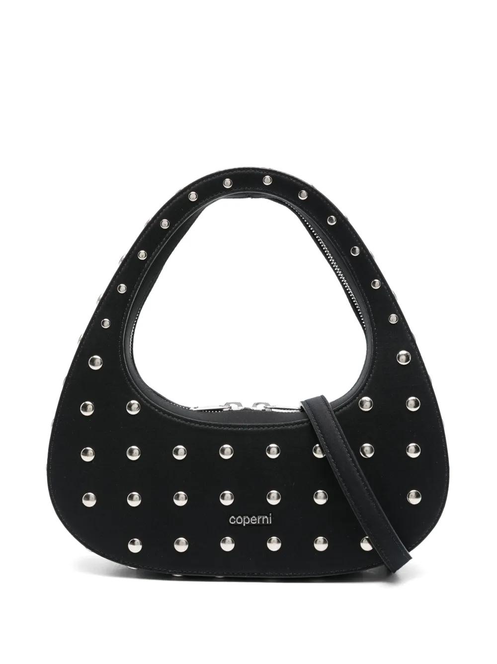 black satin finish silver-tone stud embellishment single top handle detachable shoulder strap silver-tone logo plaque main compartment faux-leather lining two-way zip fastening This piece comes complete with a protective dust bag.