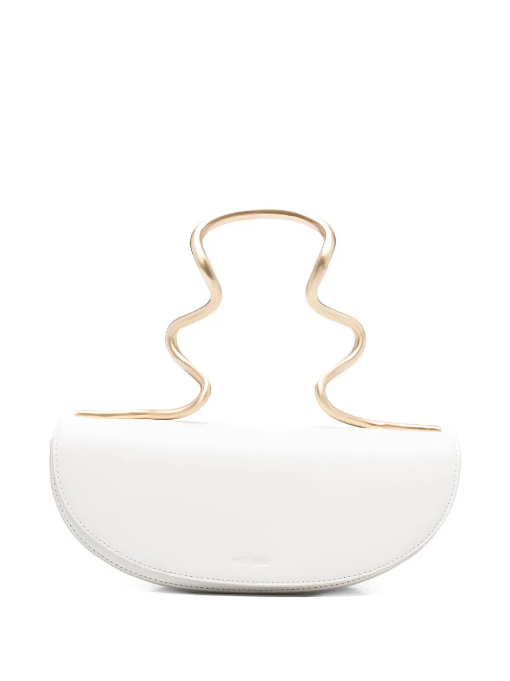 white calf leather half-moon shape curved top handle gold-tone hardware