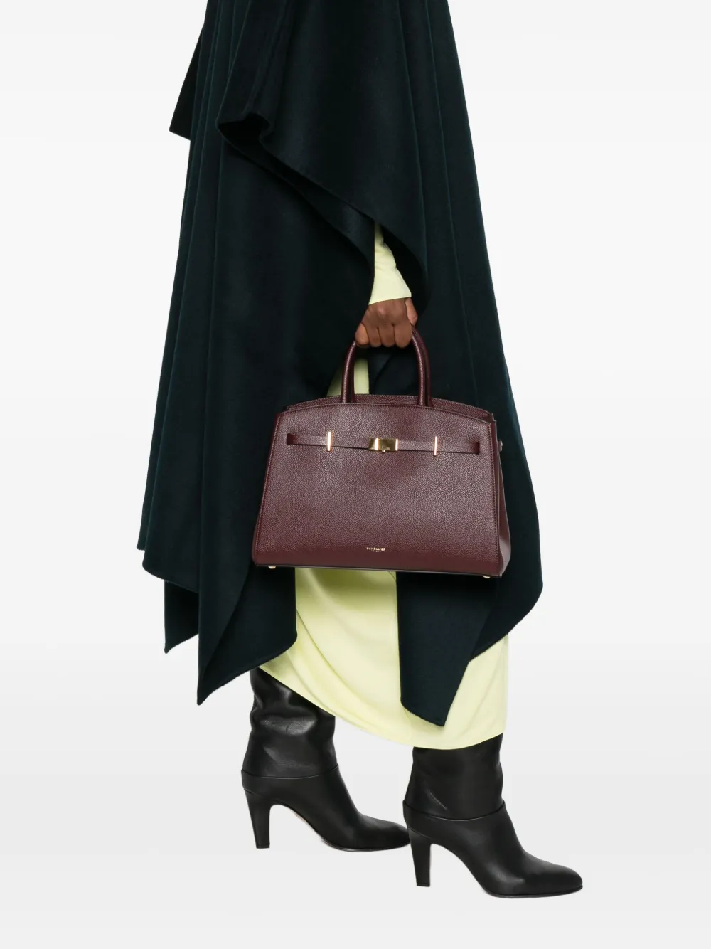 burgundy grainy leather two top handles clasp fastening adjustable detachable shoulder strap structured shape
