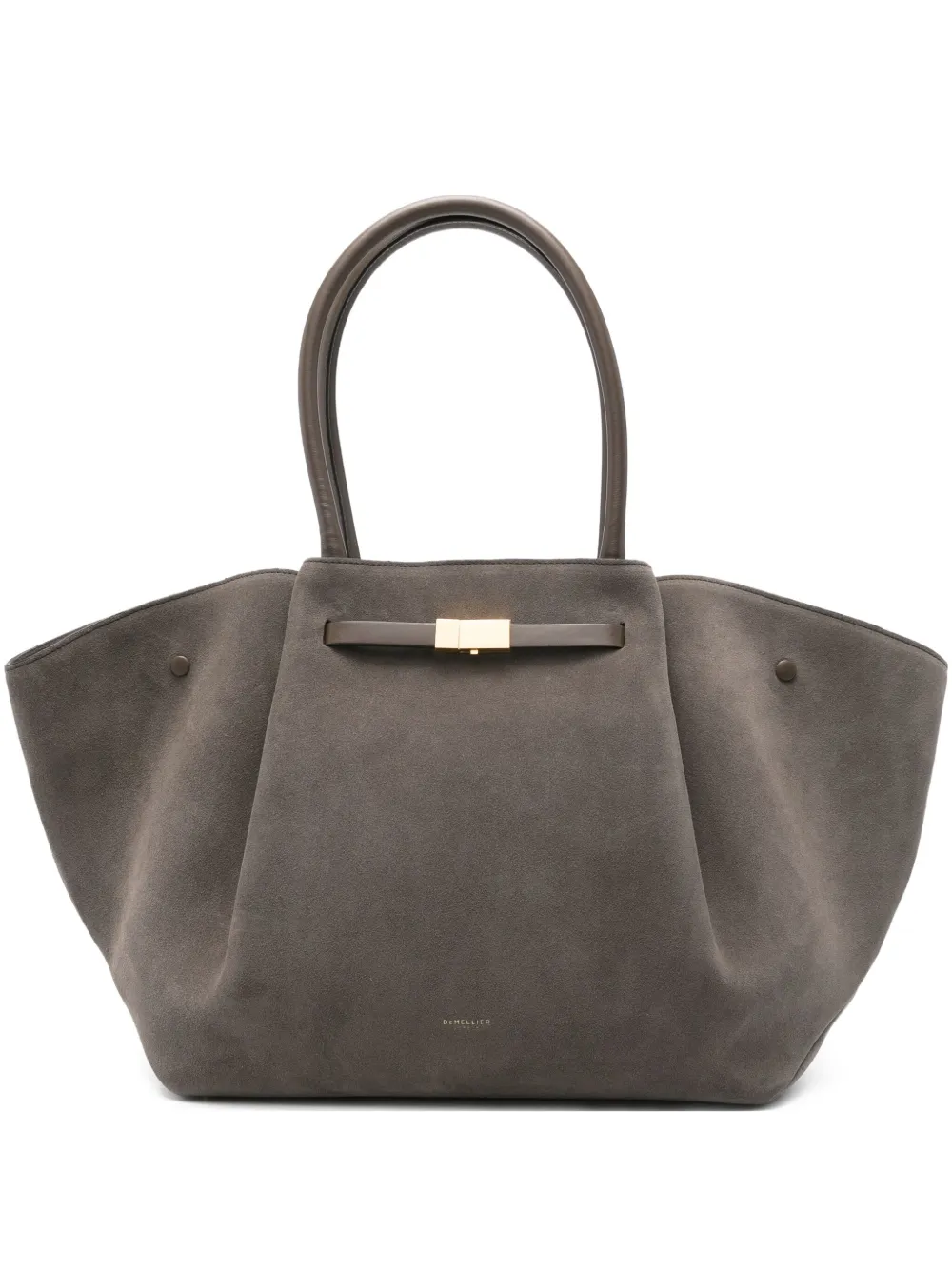 dark olive suede texture two top handles gold-tone clasp press-stud fastening