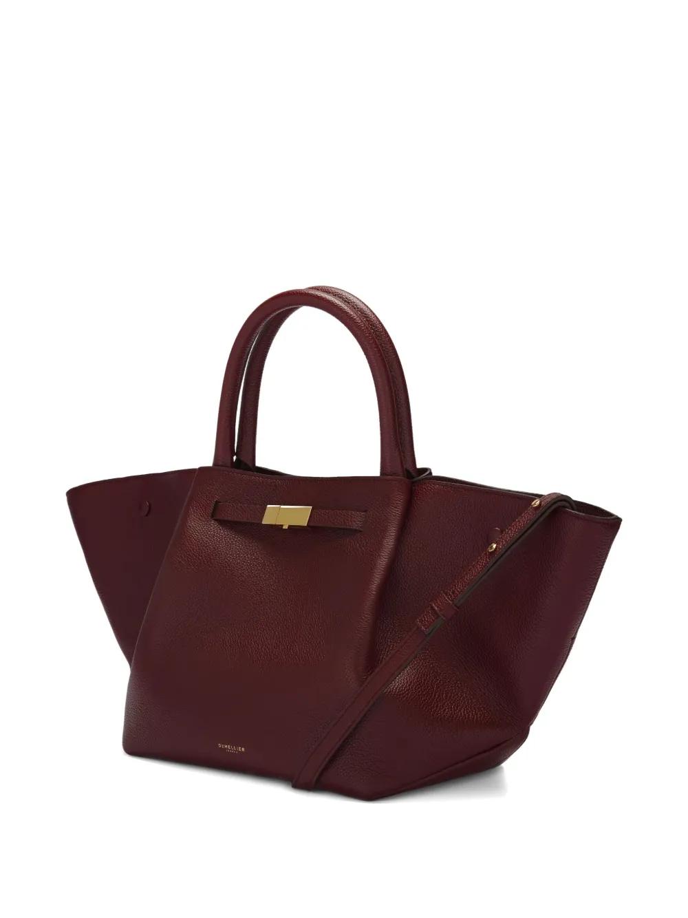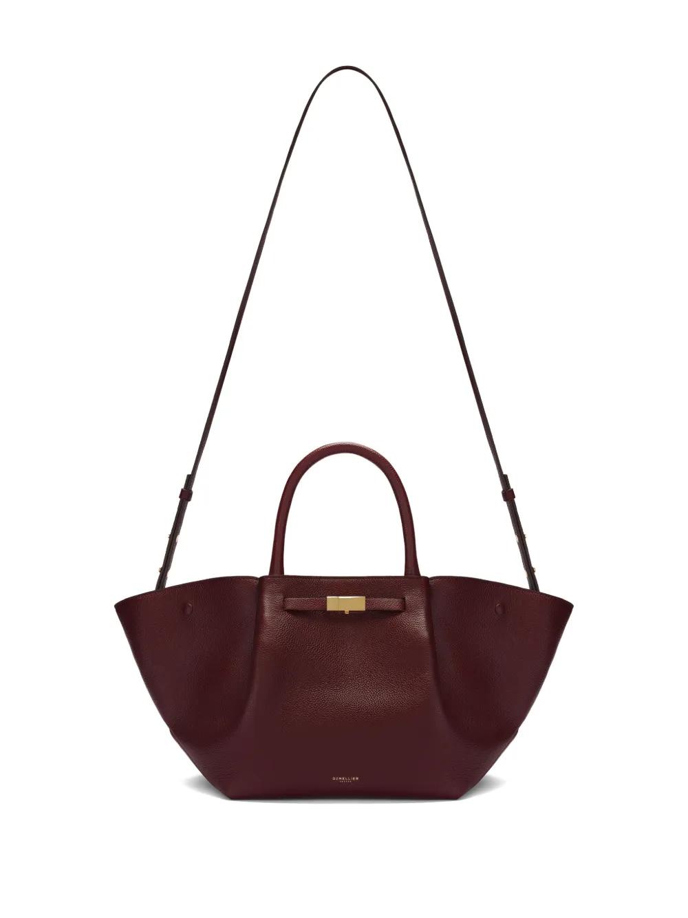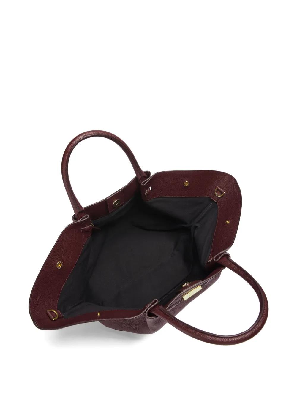 red calf leather grained texture logo stamp to front gold-tone hardware magnetic-fastening side press-stud fastening two rolled top handles detachable shoulder strap main compartment internal zip-fastening pocket canvas lining