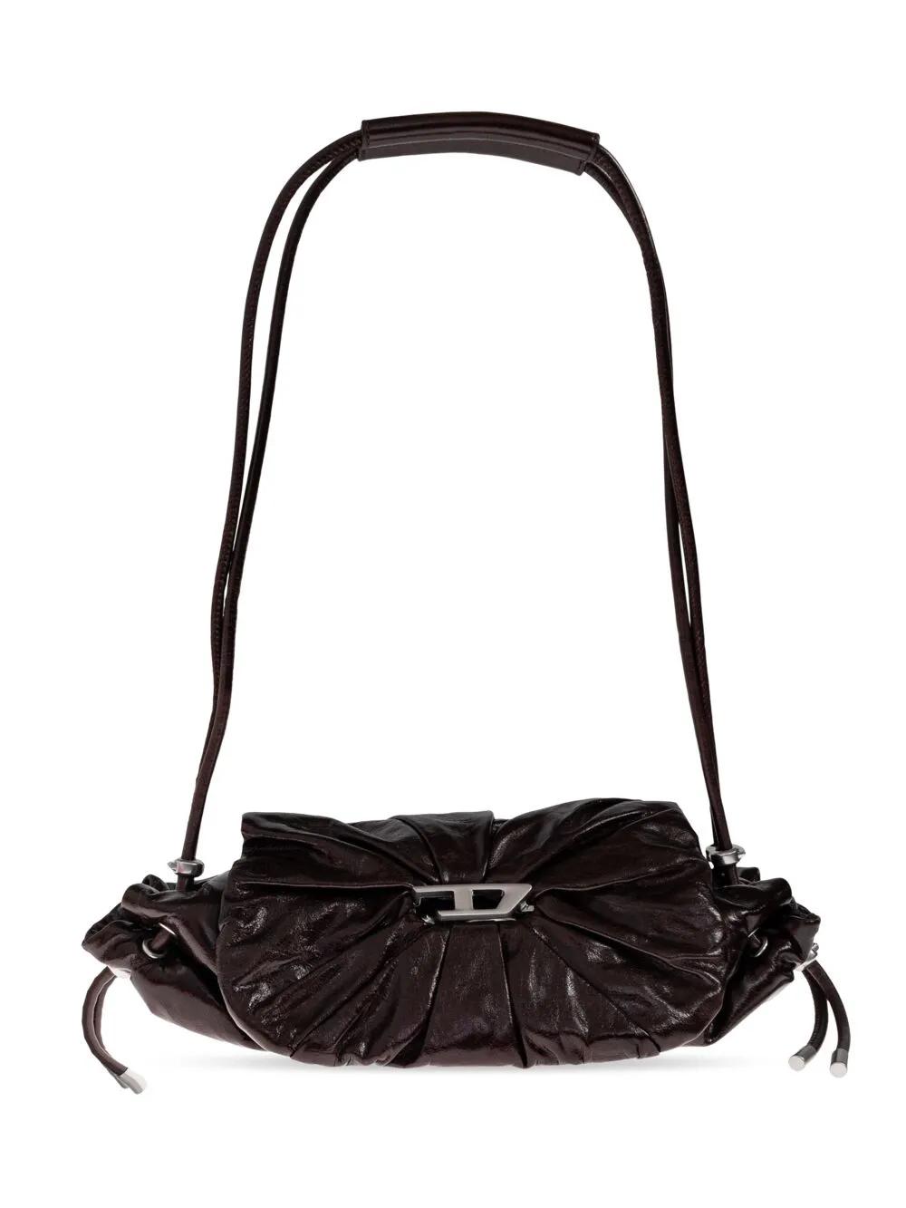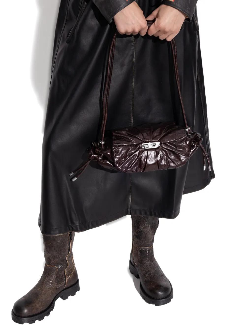 khaki calf leather bucket shape top handles detachable strap stitch detailing