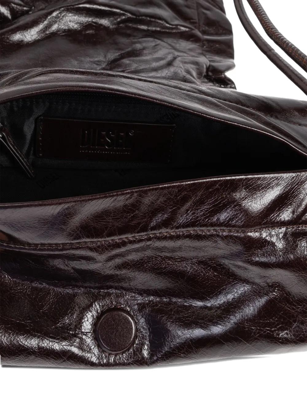white concealed press-stud fastening two rolled top handles detachable shoulder strap This piece comes complete with a protective dust bag.