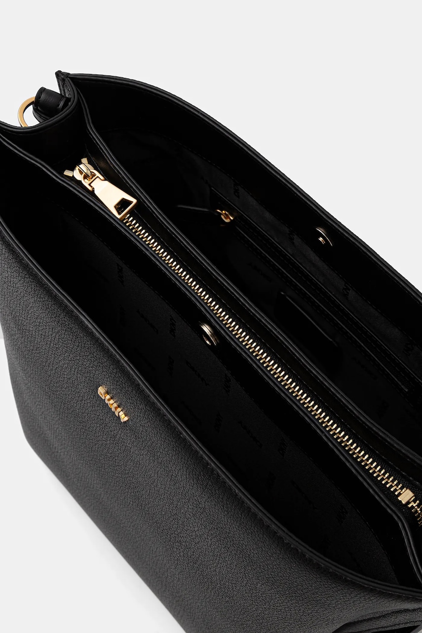 - Posiada trzy komory: jedna zapinana na suwak, dwie zapinane na magnes. - Kieszonka wewnętrzna zapinana na suwak. - Mieści format A4. - Długi uchwyt dla komfortowego noszenia w dłoni lub na ramieniu. - Model z podszewką. - Długość uchwytu: 65 cm. - Głębokość: 13 cm. - Wysokość: 28 cm. - Szerokość u podstawy: 27 cm.