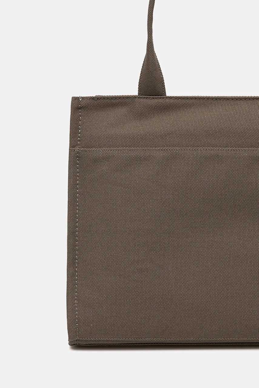 - Komora zapinana na suwak. - Z przodu wsuwana kieszeń, która ułatwia bezpieczne przechowywanie telefonu lub innych drobiazgów. - Usztywnione dno torebki pozwala zachować kształt produktu przez długi czas. - Torebka do noszenia w ręku lub na ramieniu. - Długie uchwyty. - Mieści format A4. - Model bez podszewki. - Długość uchwytów: 58 cm. - Głębokość: 15 cm. - Wysokość: 33 cm. - Szerokość u podstawy: 39,5 cm.
