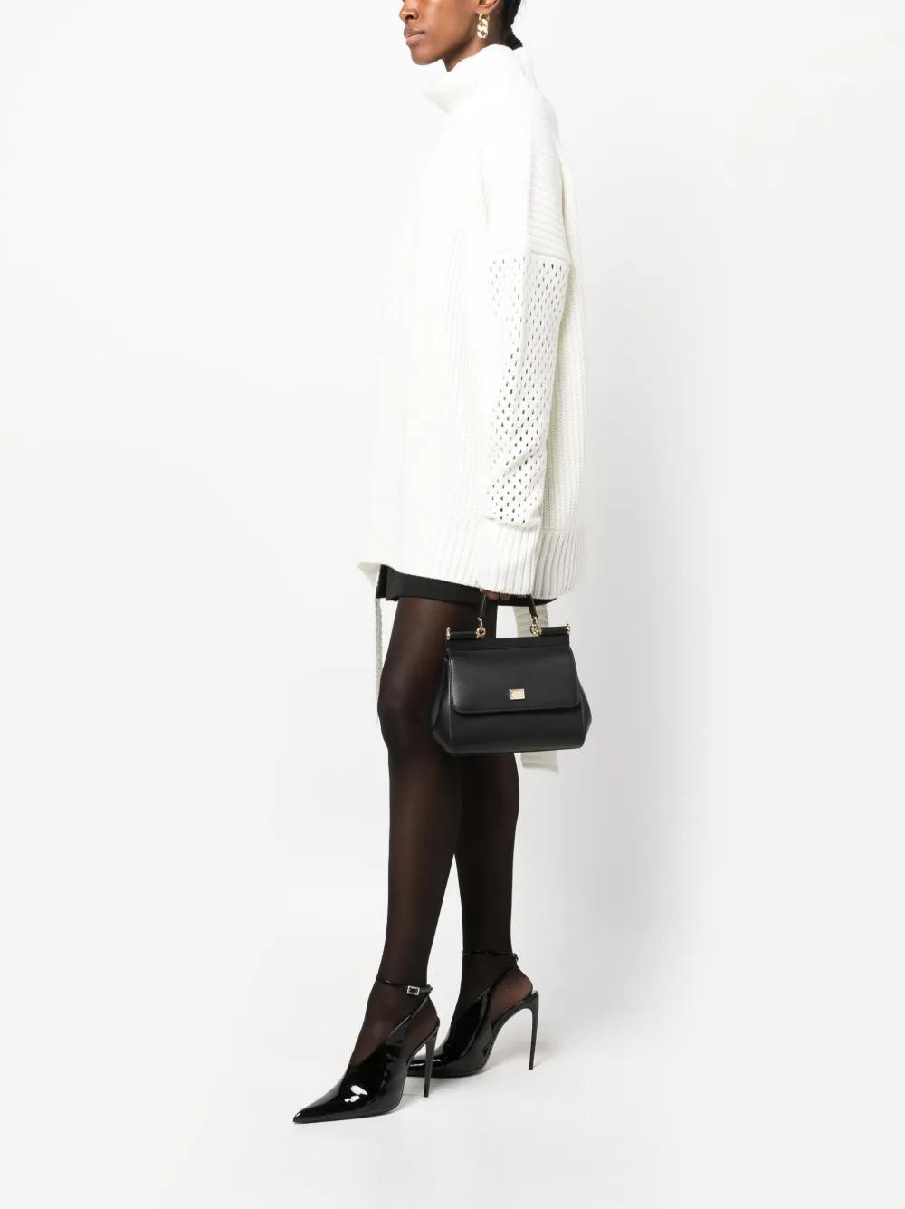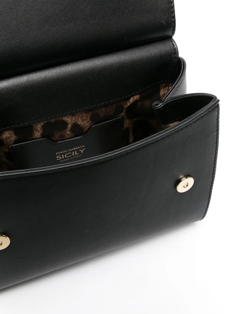 jet black calf leather grained texture gold-tone logo plaque gold-tone hardware single circular top handle foldover top with magnetic fastening main compartment debossed internal logo internal slip pocket leopard print lining