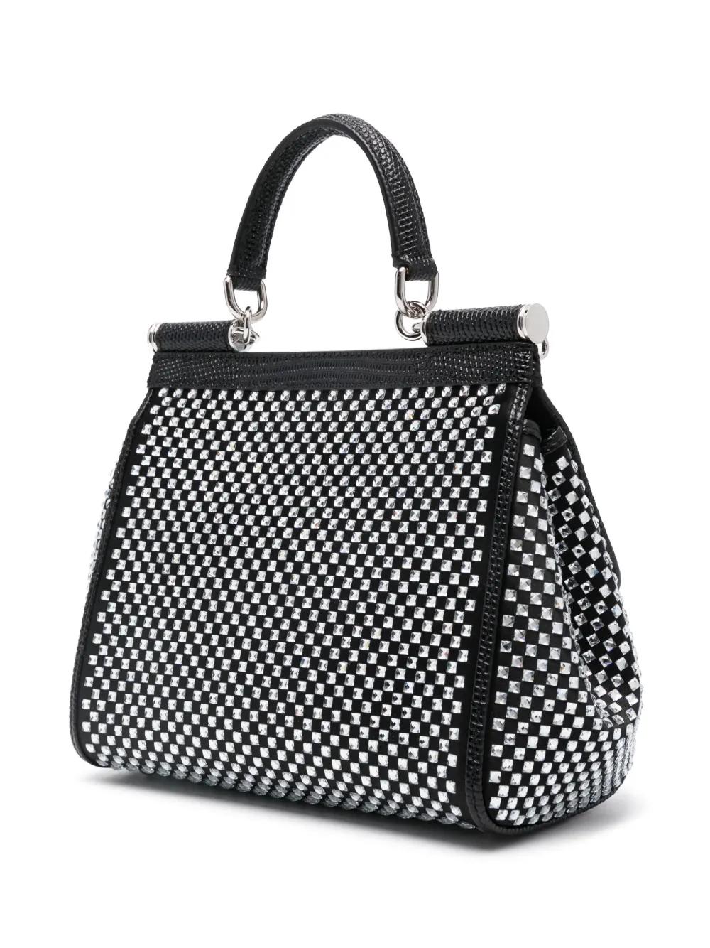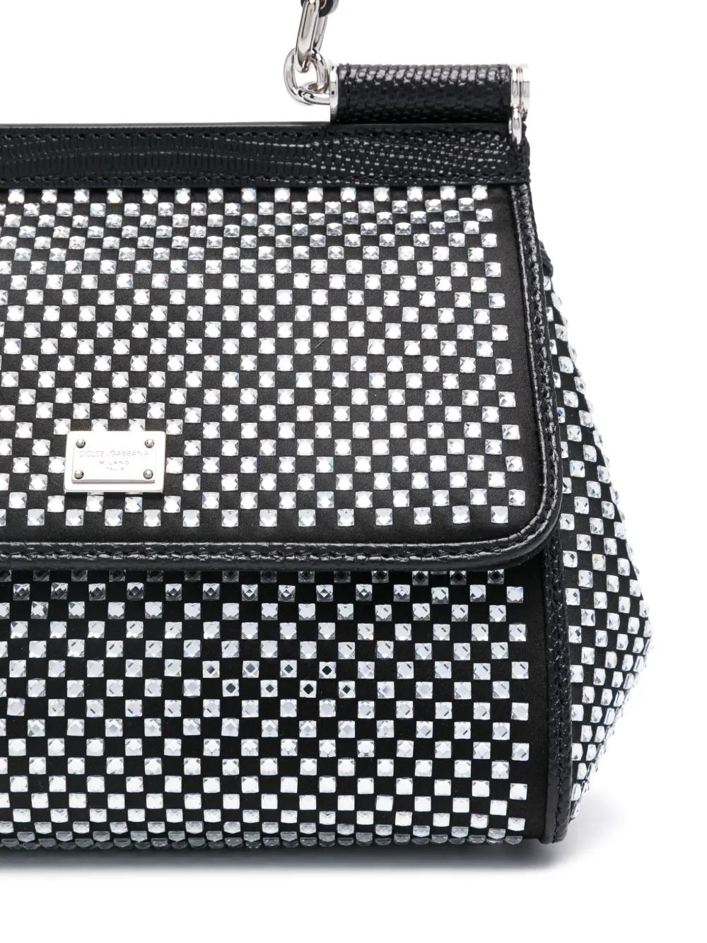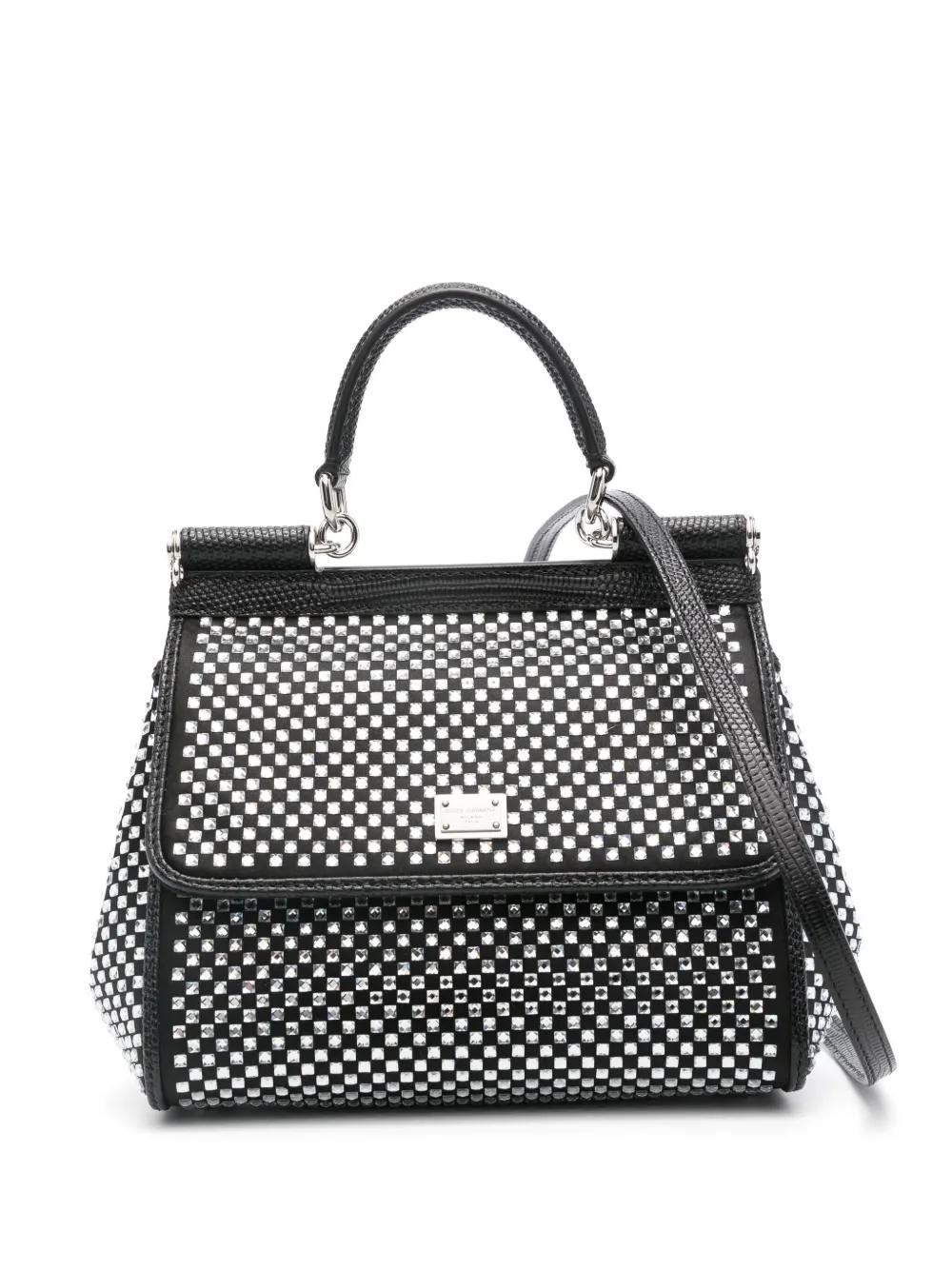 black calf leather lizard-skin effect crystal embellishment adjustable detachable shoulder strap single top handle logo plaque at the front metal feet main compartment internal patch pocket internal card slot internal logo plaque full lining silver-tone hardware foldover top with magnetic fastening This piece comes complete with a protective dust bag.