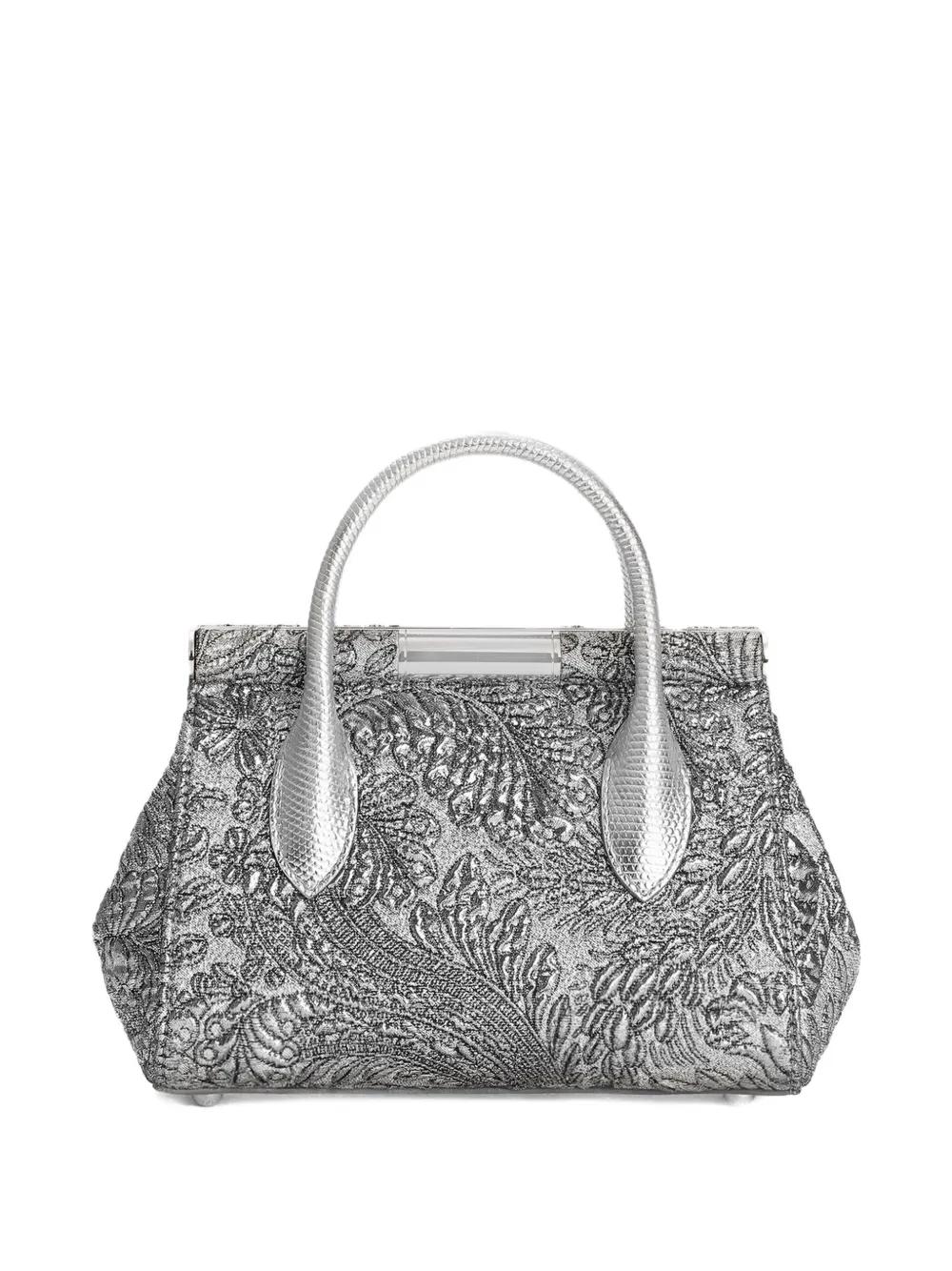 silver-tone floral embroidery embellishment top handle top clasp closure