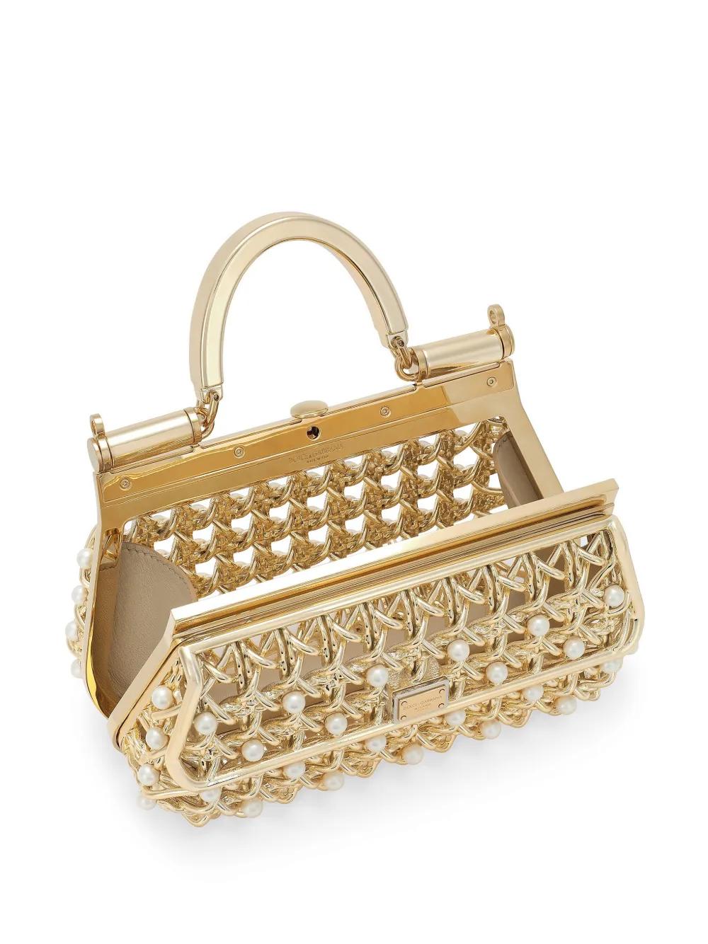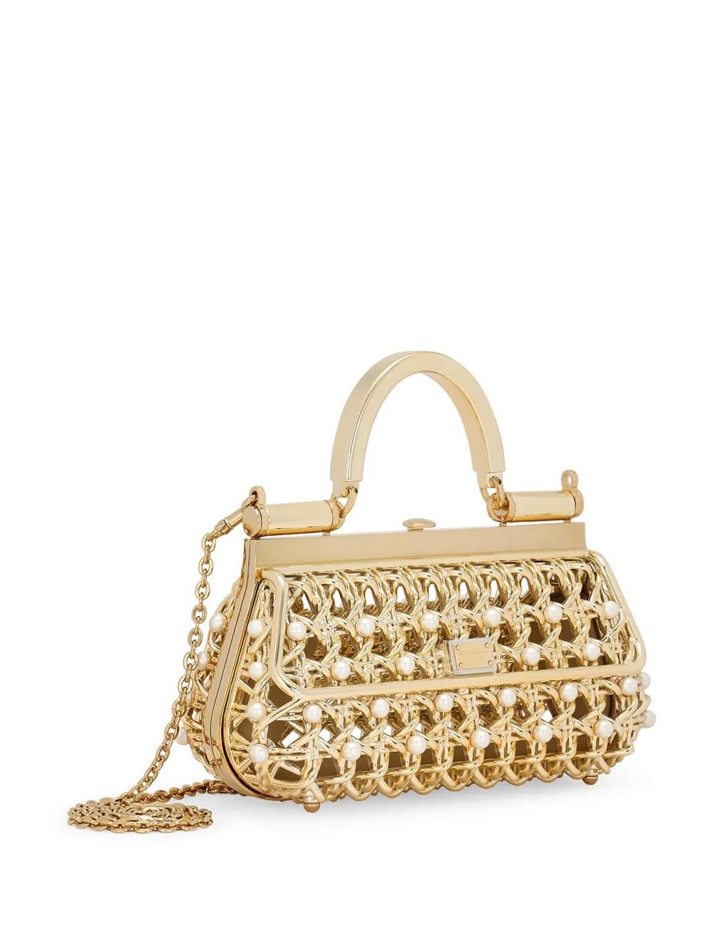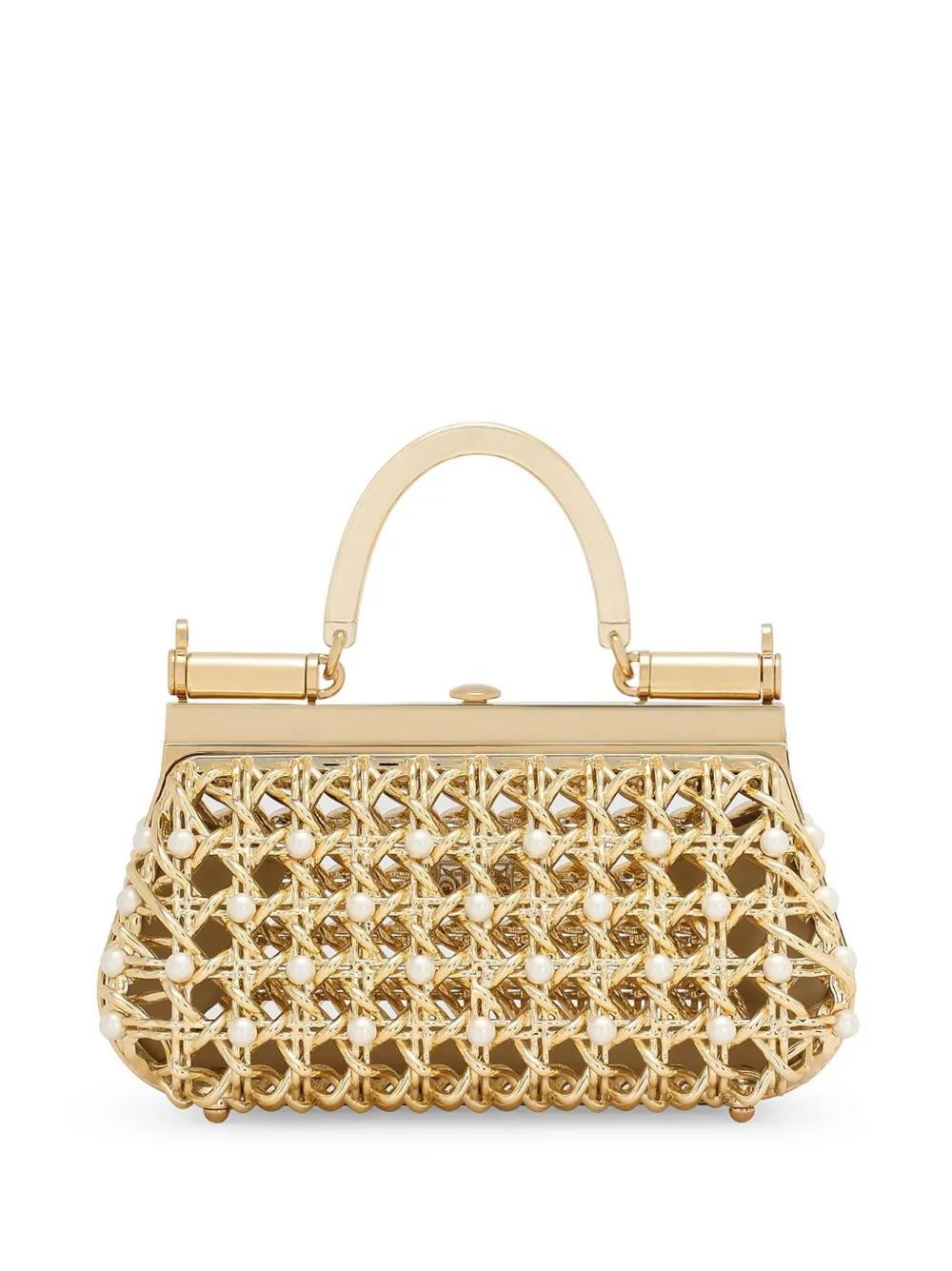 Dolce & Gabbana pearl-embellished caged tote bag - Gold