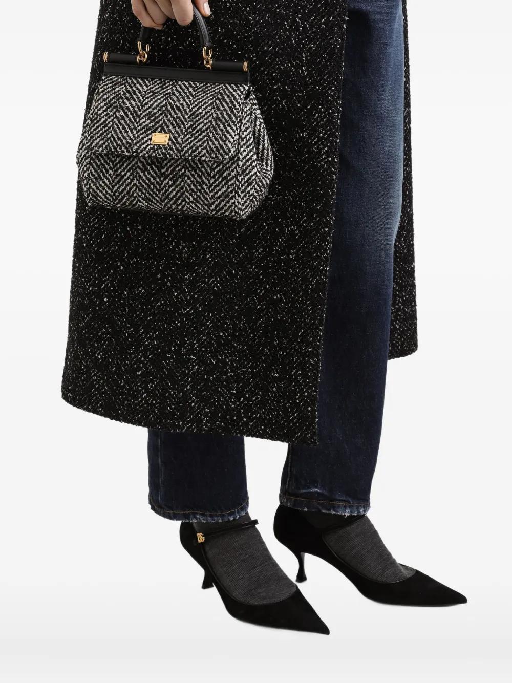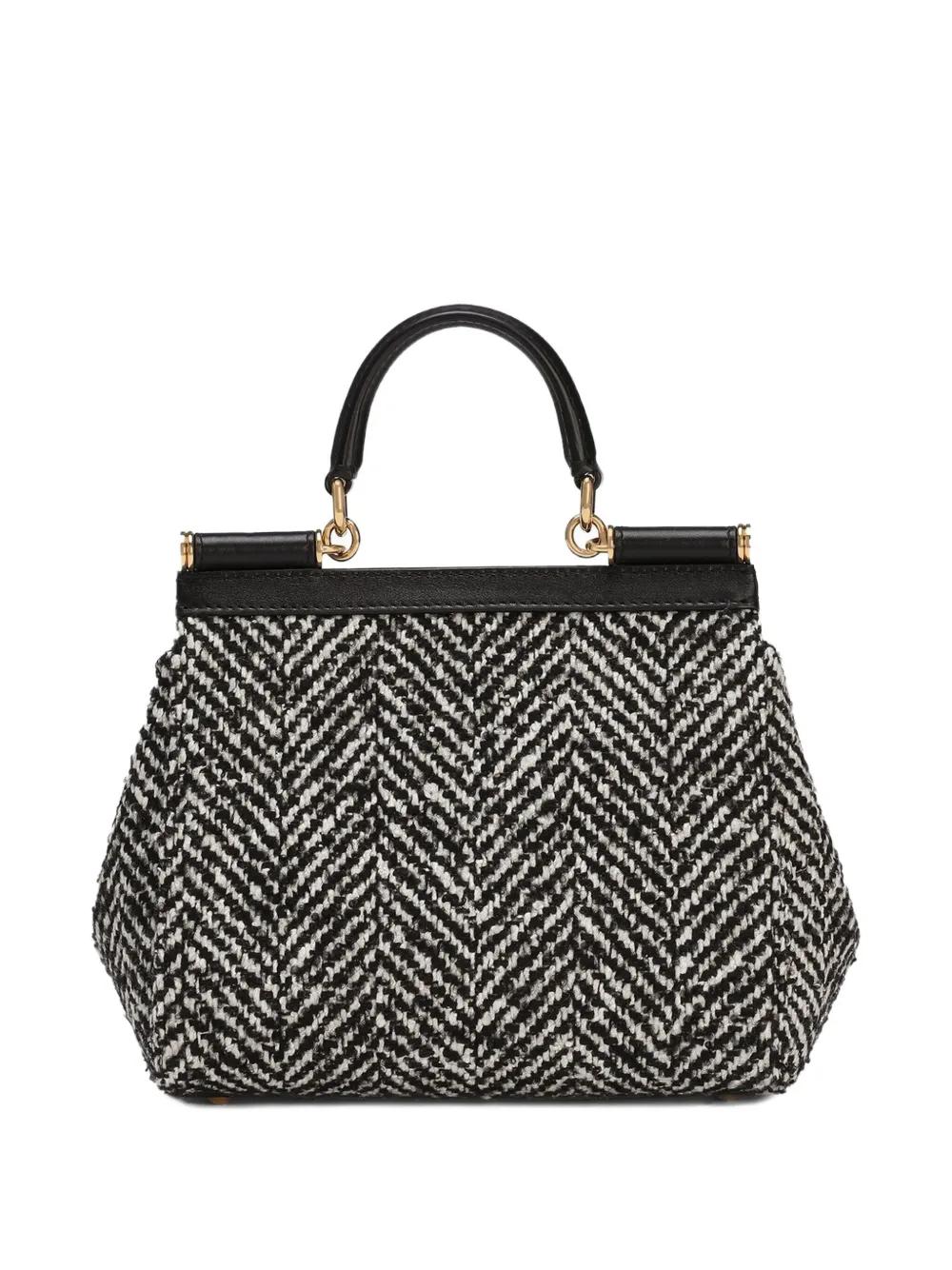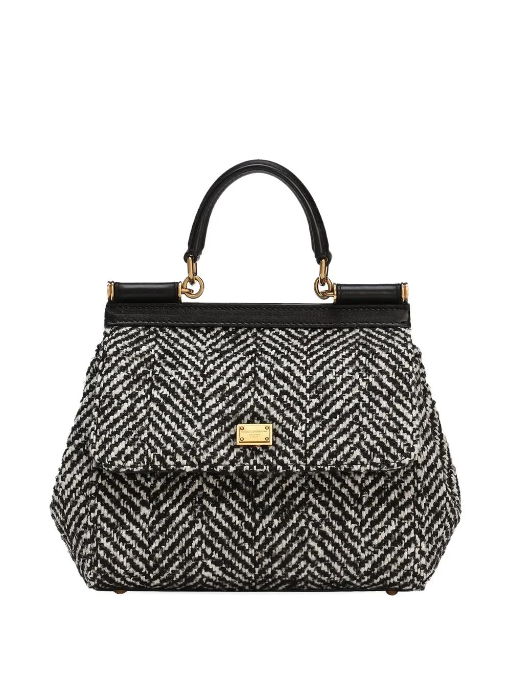 white herringbone pattern top handle gold-tone hardware flap closure structured shape